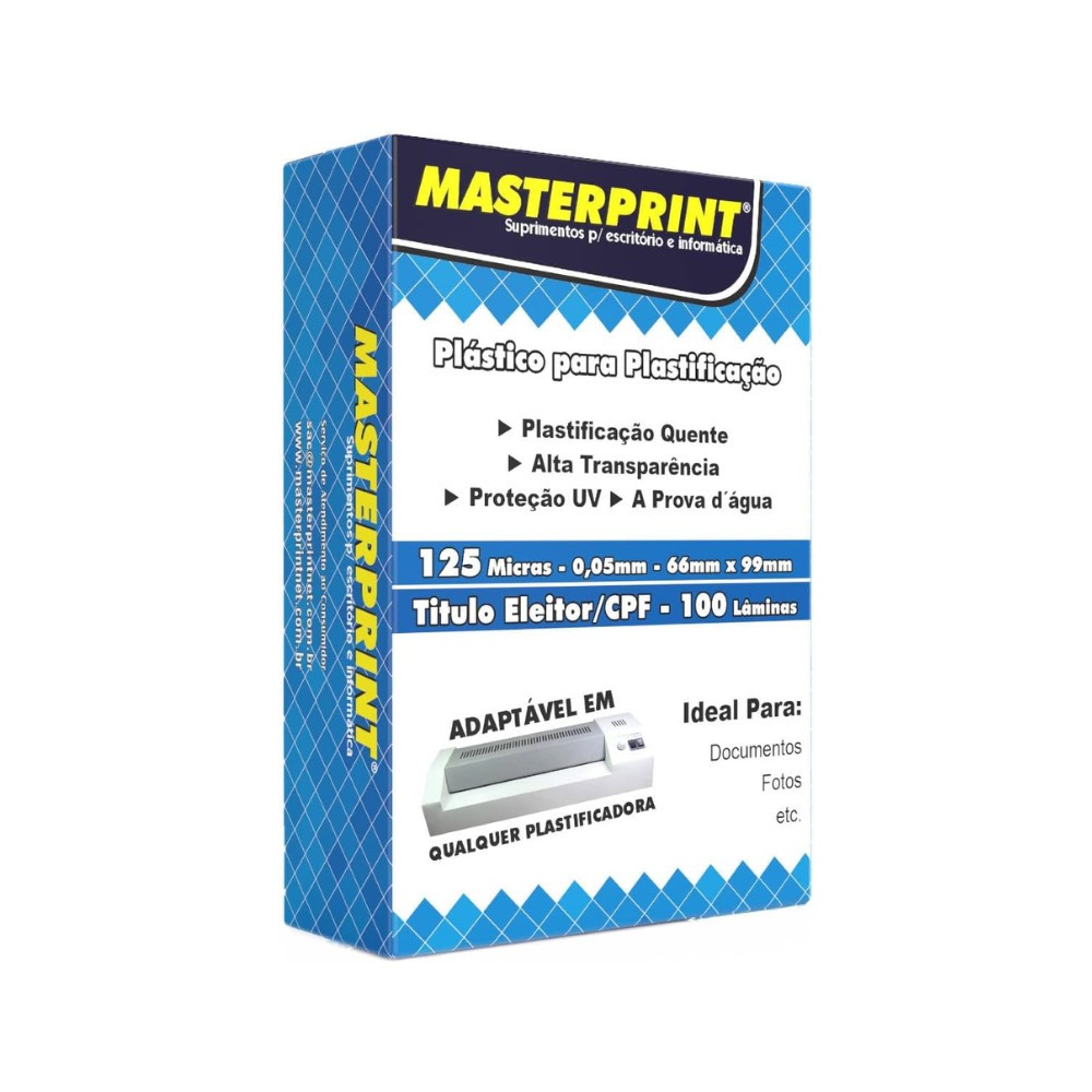 Plástico Plastificação 125 Micras 100 Lâminas 66 x 99mm (Titulo Eleitor / CPF) Masterprint