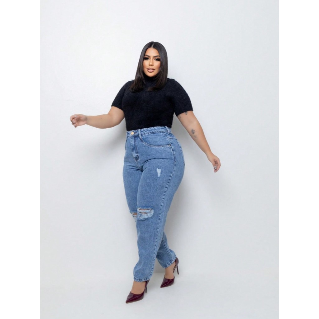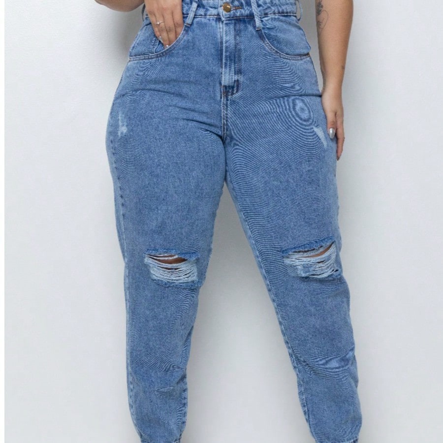 Calça Jeans Mom Plus Size Cintura Alta Premium destroyed