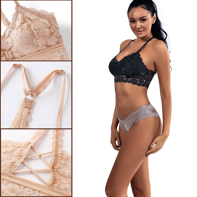 Sexy lace sutiao costas lindas renda bojo sutiã fêmea cueca confortável lingerie feminino