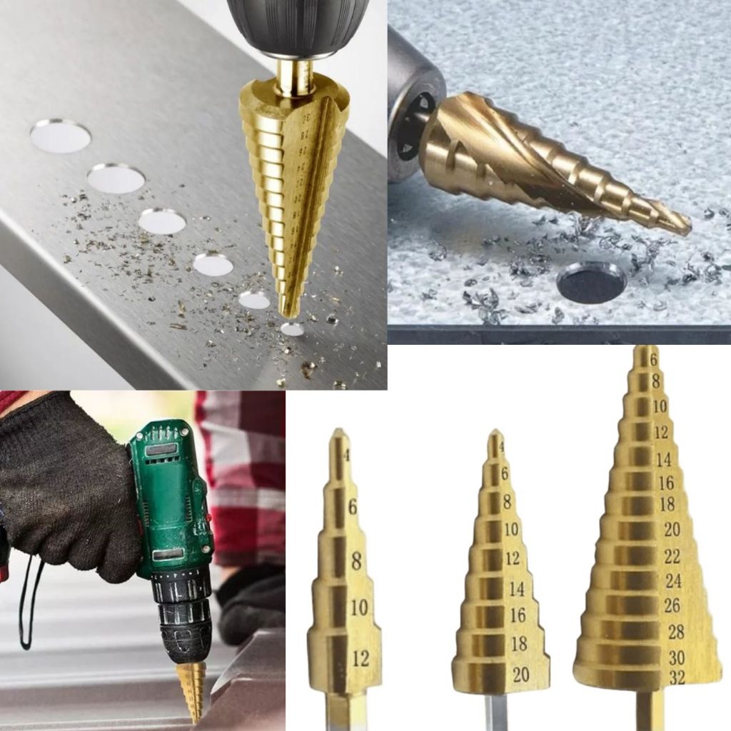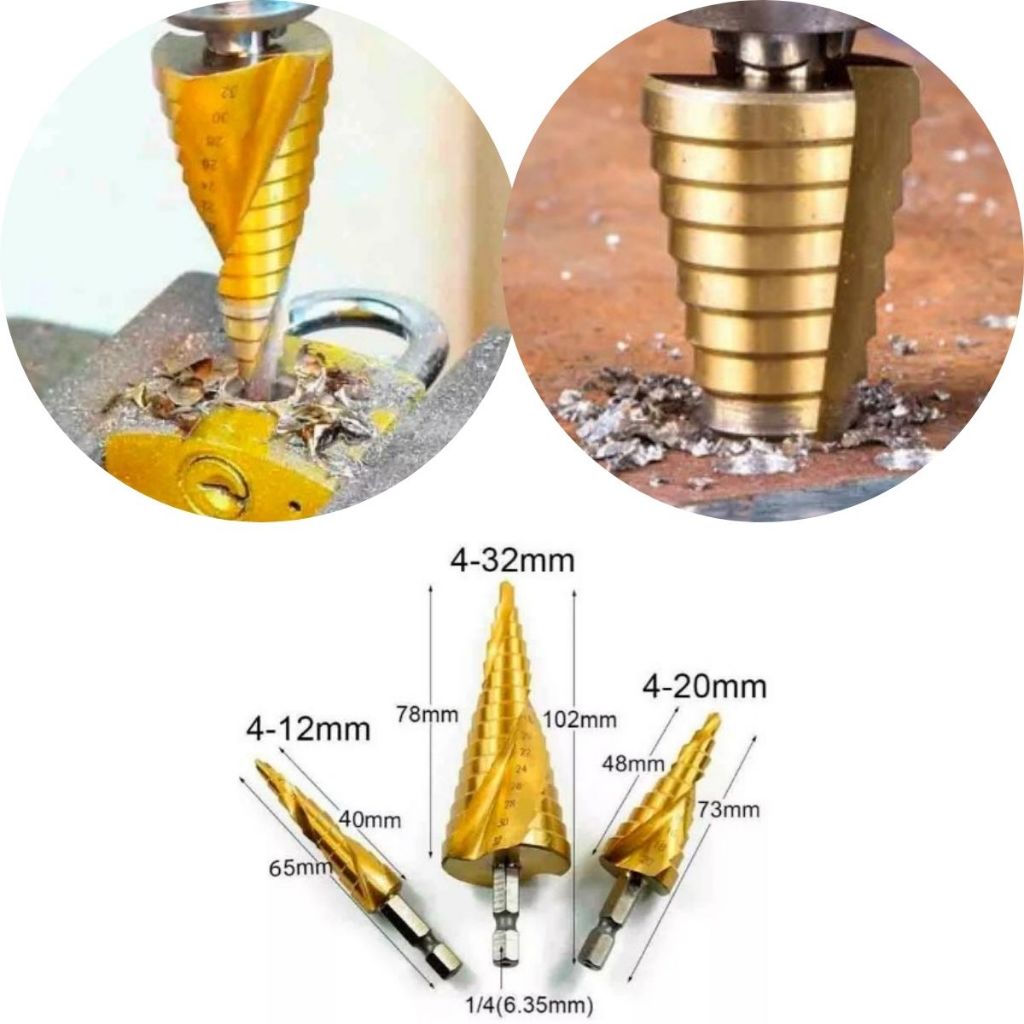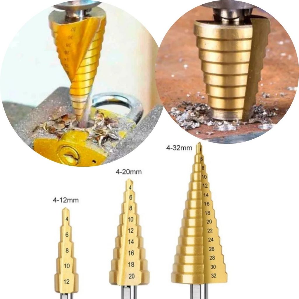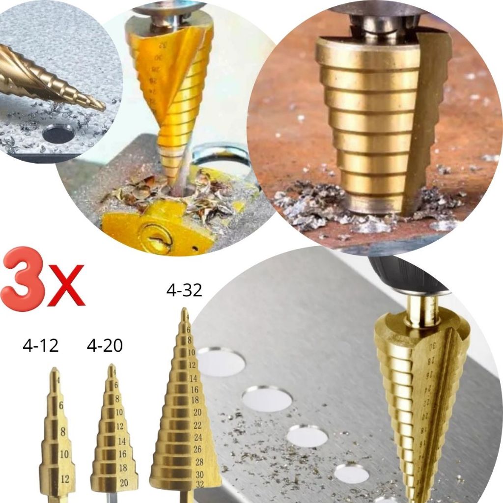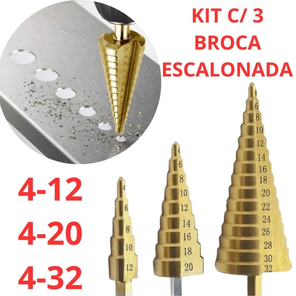 Kit 3 Broca Escalonada Espiral Aço Titânio 4 a 32mm Titânio Perfuração Metal