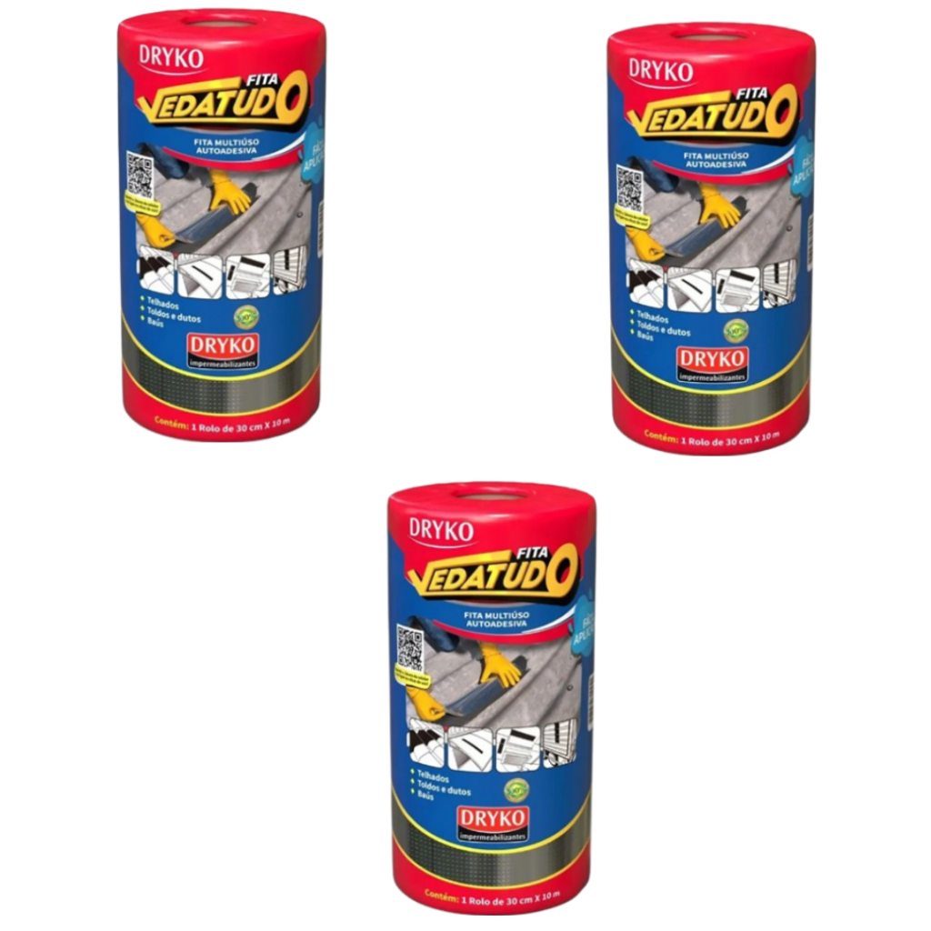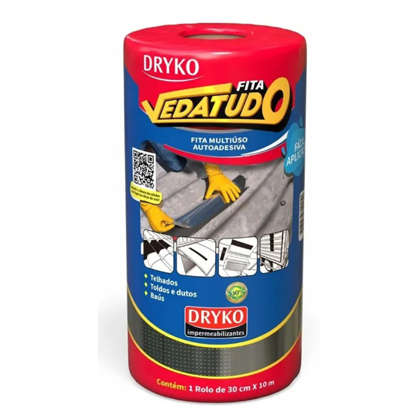 Manta asfáltica 30 cm x 10 m Rolo auto adesiva aluminizada multiuso Dryko Vedatudo Impermeabilizaçao