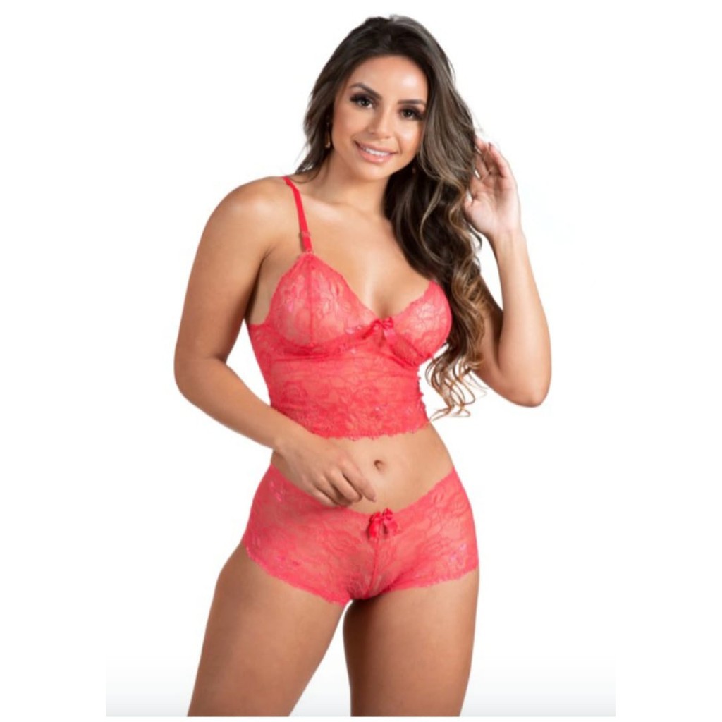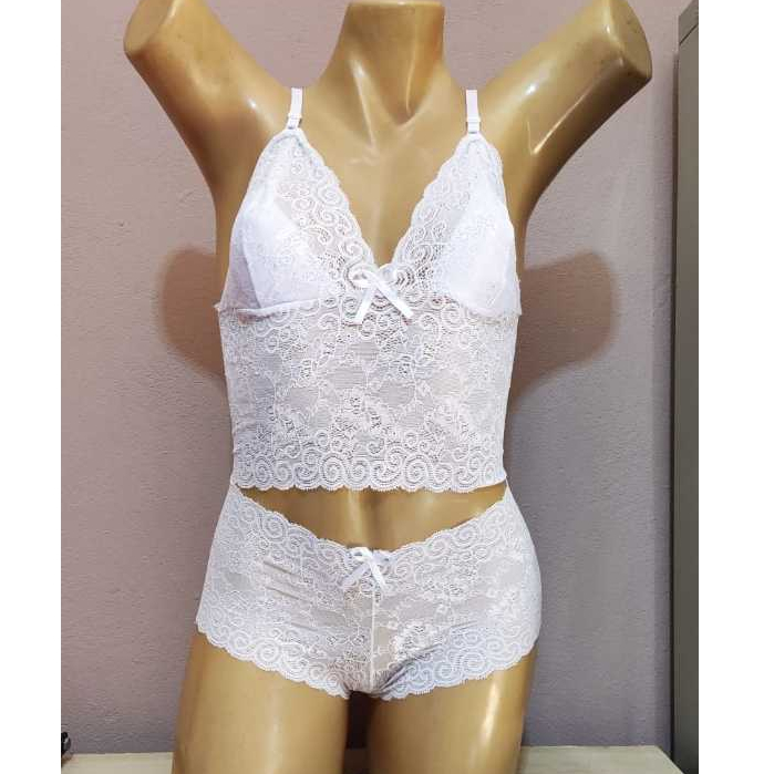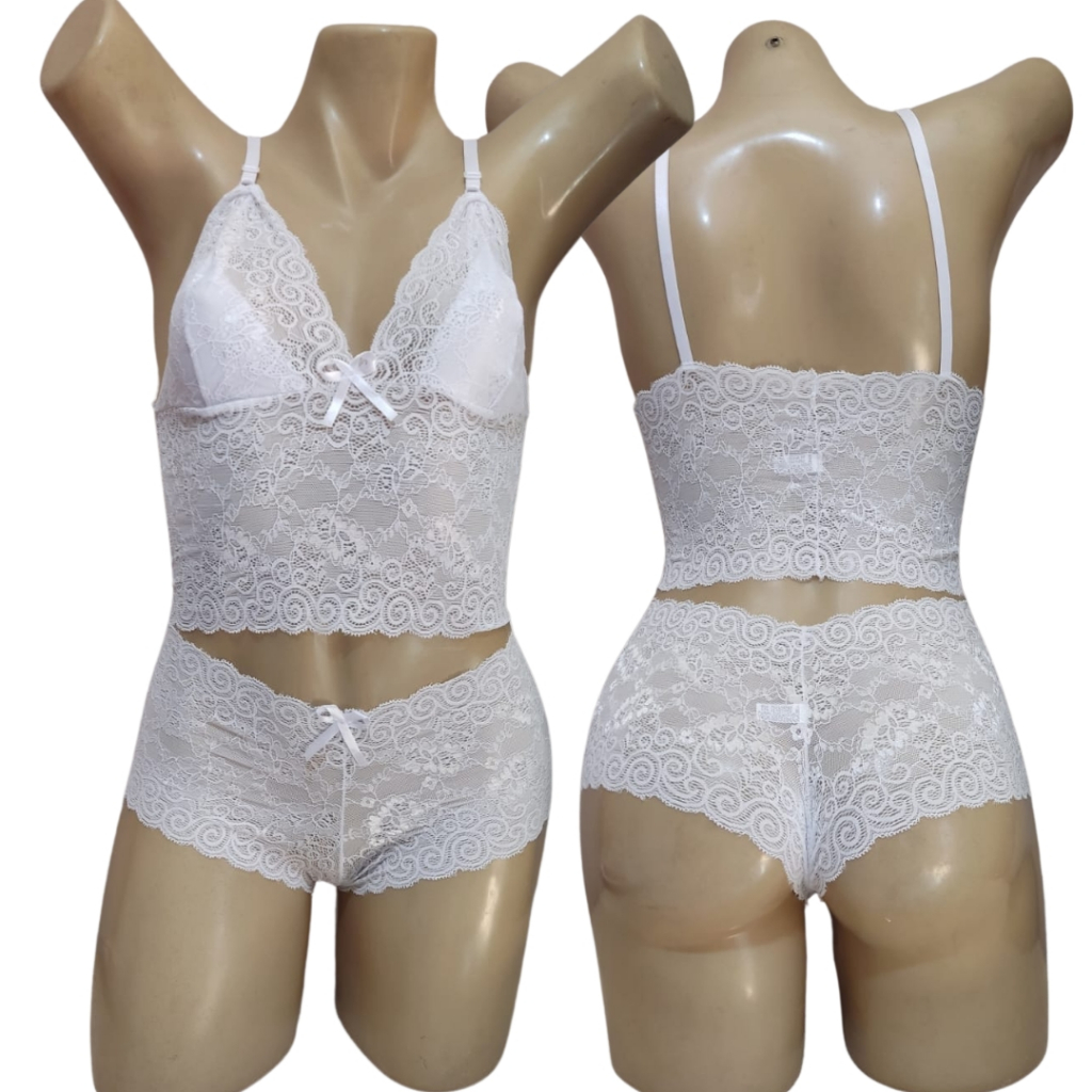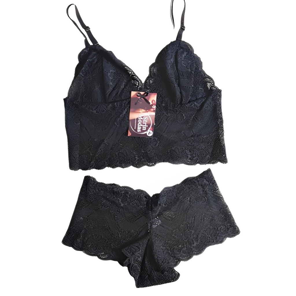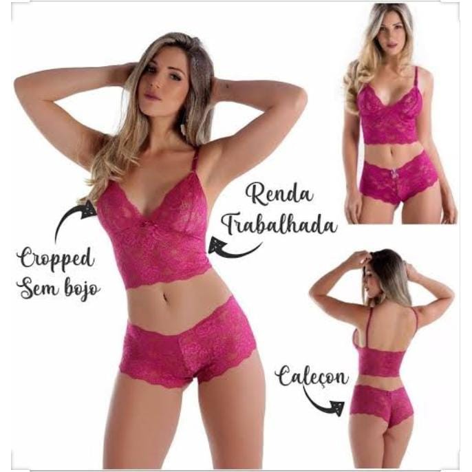 Conjunto de Lingerie Feminino em Cropped e Caleçon Espera Marido Sem Bojo