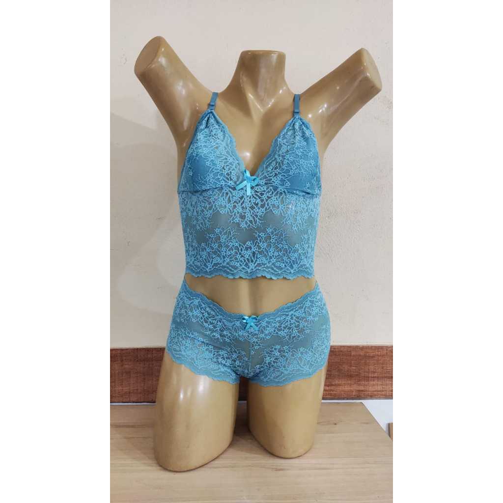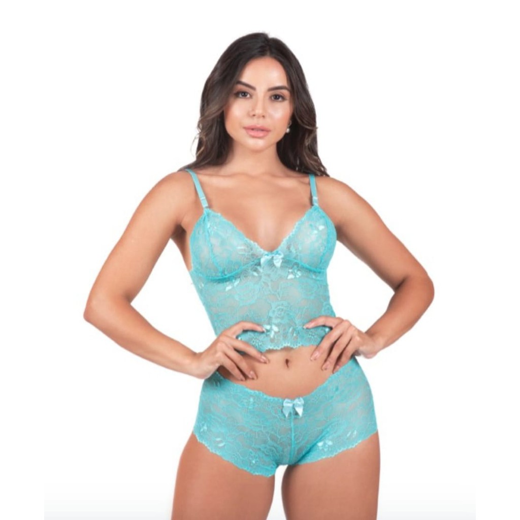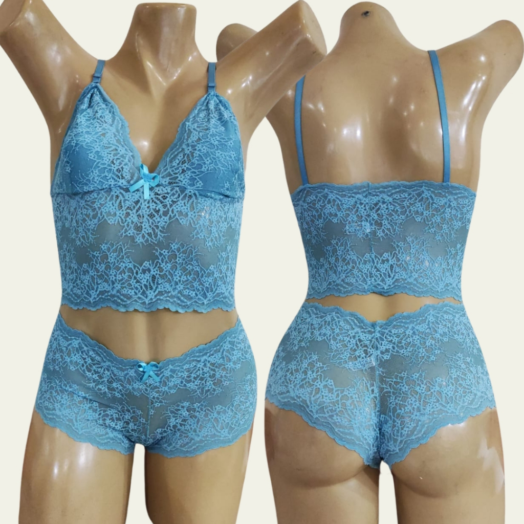 Conjunto de Lingerie Feminino em Cropped e Caleçon Espera Marido Sem Bojo