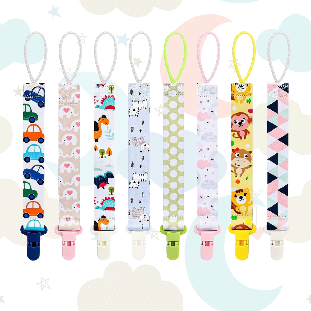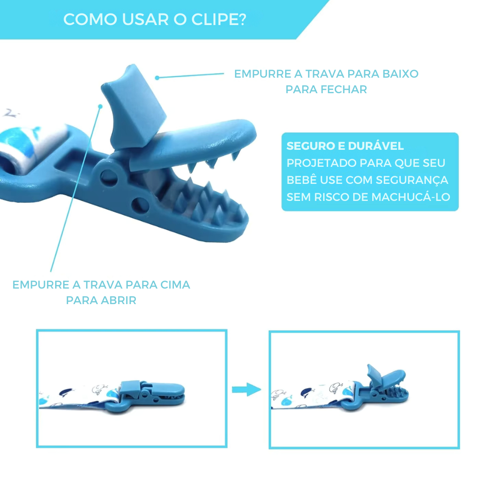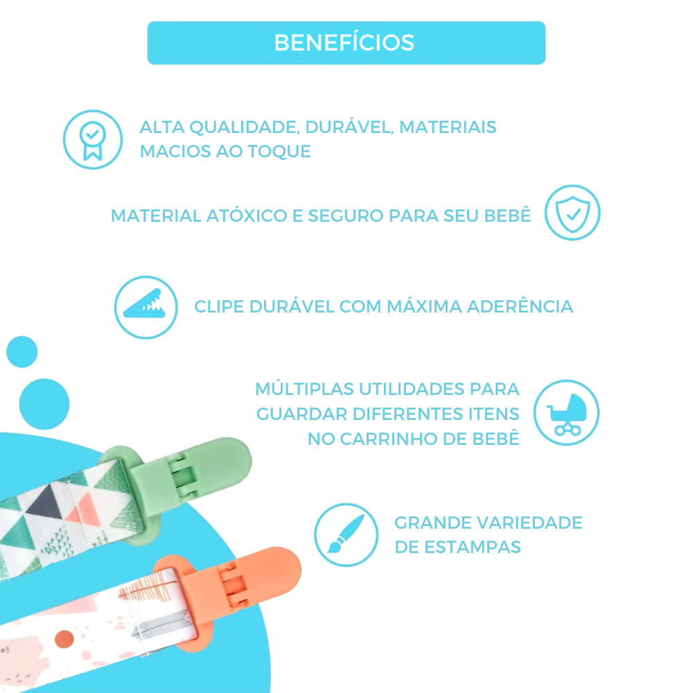 Suporte para Chupeta de Bebê com Estampa Fofa para Menino e Menina - com Clipe, Trava e Prendedor