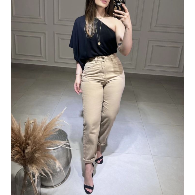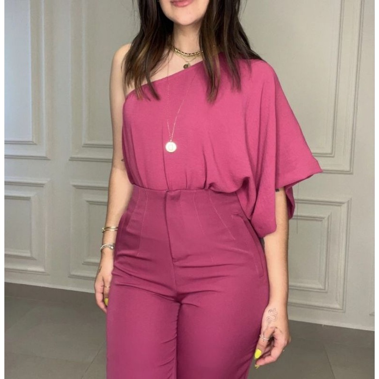 Body Alfaiataria Um Ombro Só Elegância Manga Ampla Flare Tendência Chic Mula Manca
