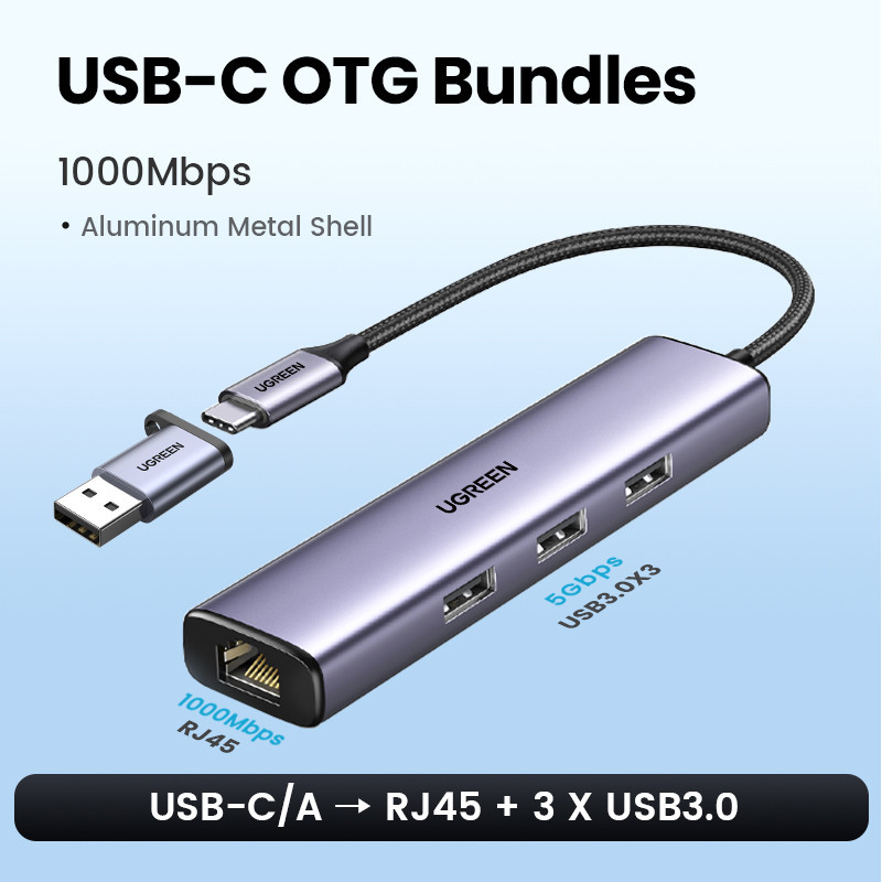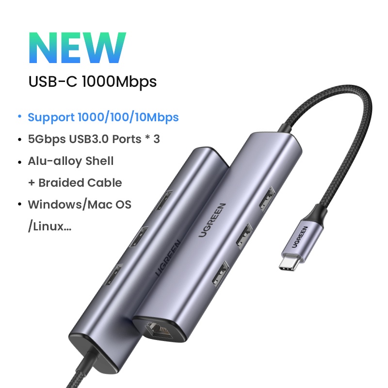 UGREEN-Tipo C USB3.0 Ethernet Adapter 1000 Mbps USB HUB Para Laptop Nintendo Computador Placa De Rede