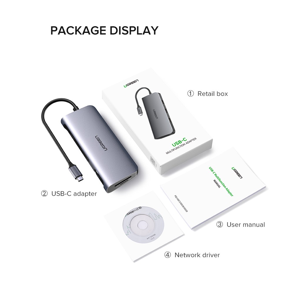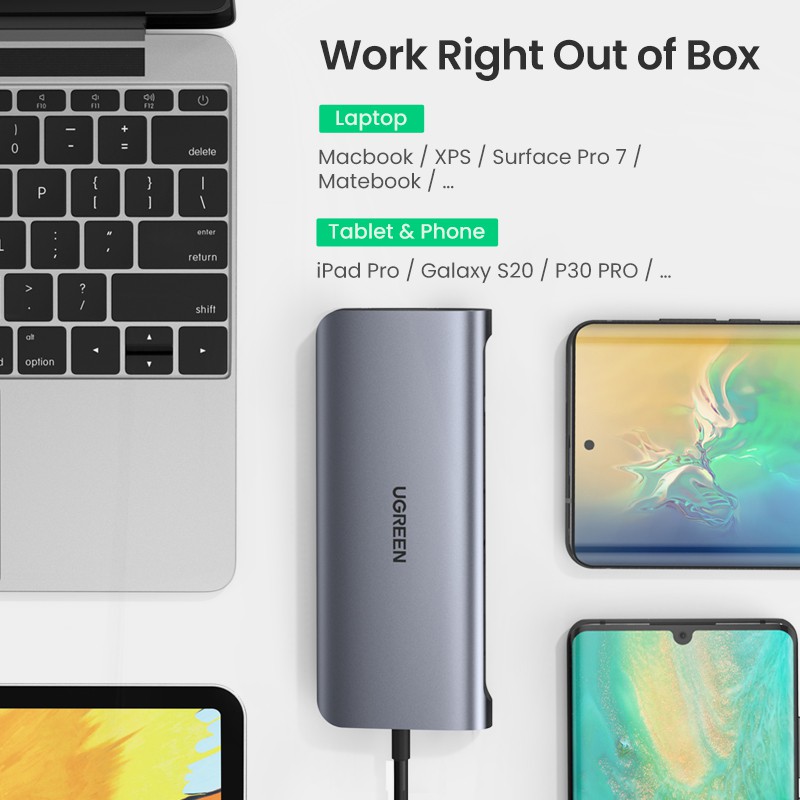 UGREEN Tipo C Hub 10 Em 1 Com Leitor De Cartões SD/4K RJ45 HDMI VGA PD USB 3.0 3.5mm TF Para MacBook/Pro/Air IPAD
