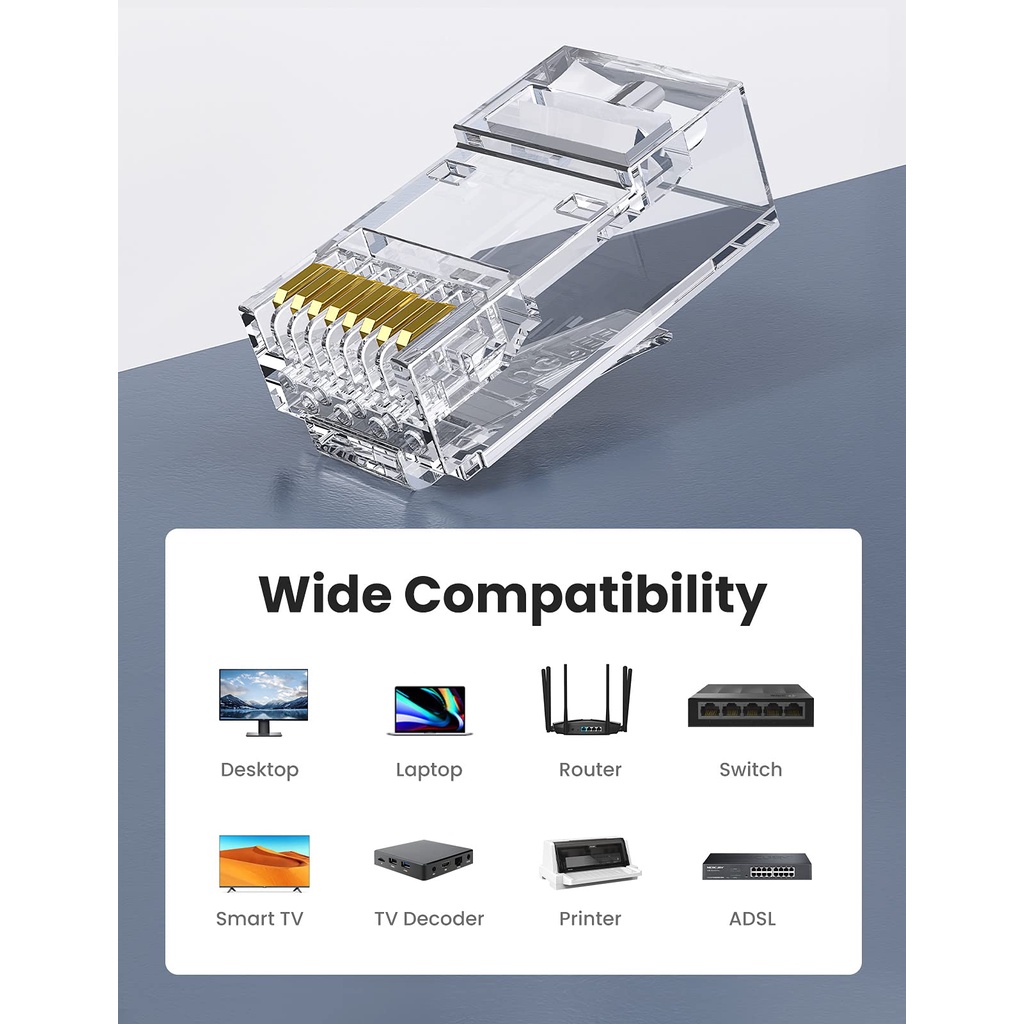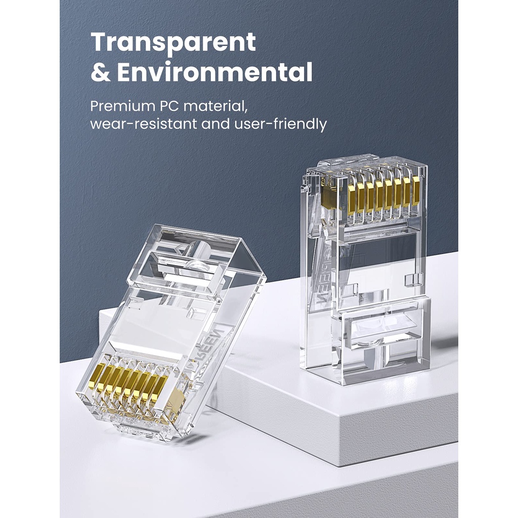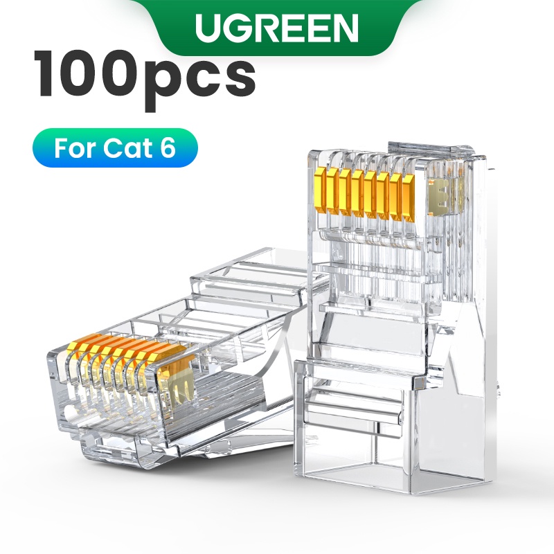 UGREEN 50 Pcs RJ45 Cat6 Conector Passar Através De Plugue Ethernet Cabo Crimpador De Rede LAN Cristal