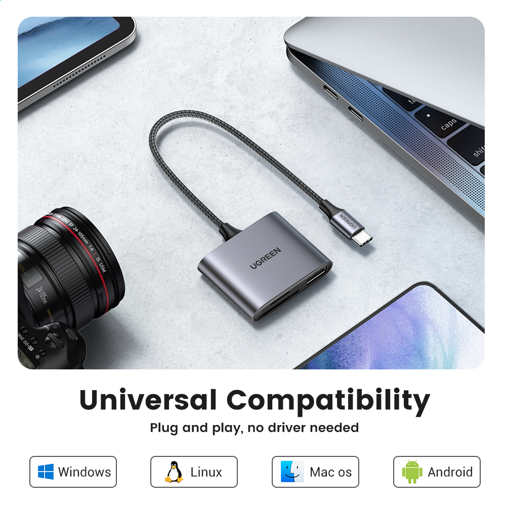 Leitor De Cartões UGREEN USB C Tipo Para 2.0 SD Micro TF PC Portátil Adaptador De 3 Em 1Memory