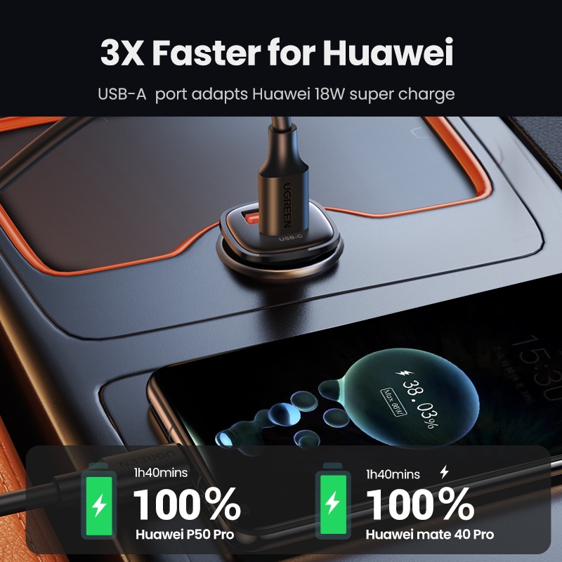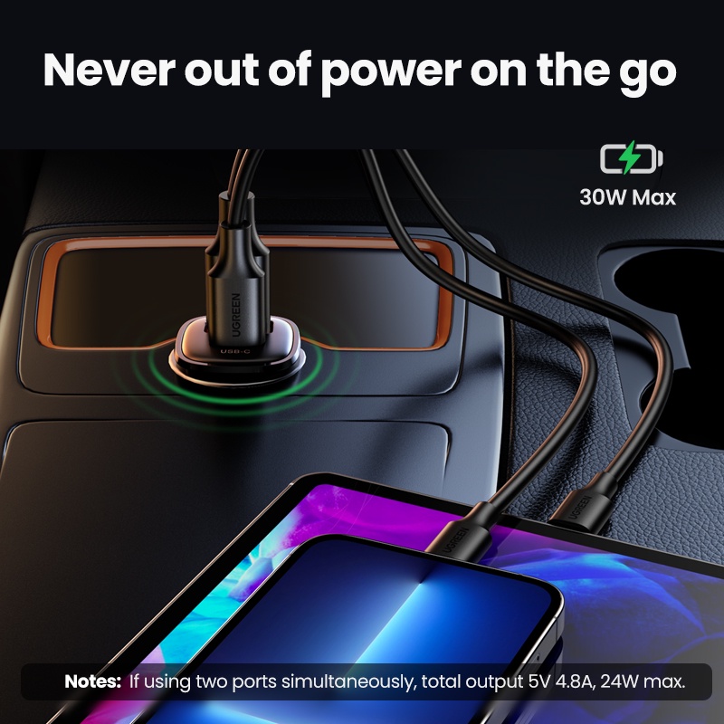 Carregador De Carro UGREEN 30W 18W Porta Dupla De Carregamento Rápido QC Pd Para iPhone XiaoMi Realme Huawei