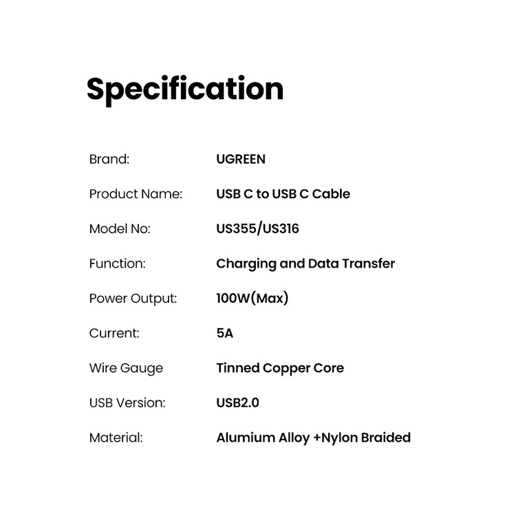 UGREEN 100W USB-C Para Nylon Trançado 5A QC4.0 Cabo De Carregamento Rápido 1M Macbook iPad Dell Huawei Samsung