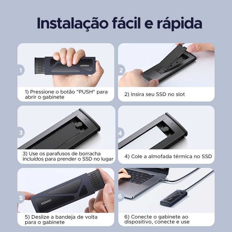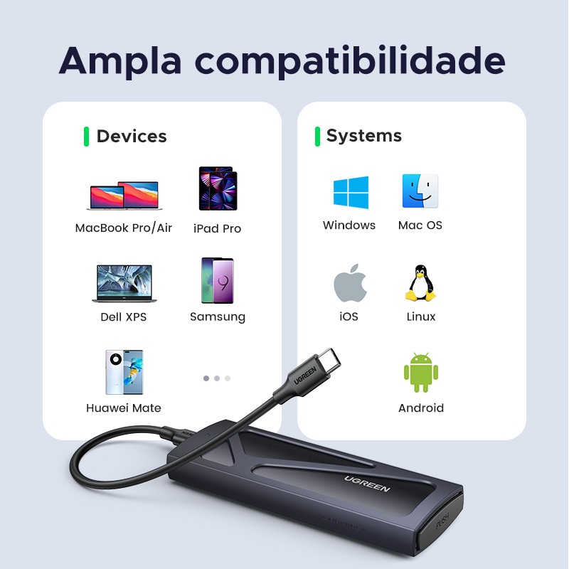 UGREEN M . 2 Caixa SSD NVMe 10Gbps USB 3.2 Externa Leitor Sem Ferramentas PCI-E C Suporta Chaves B & Tamanho 2230/2242