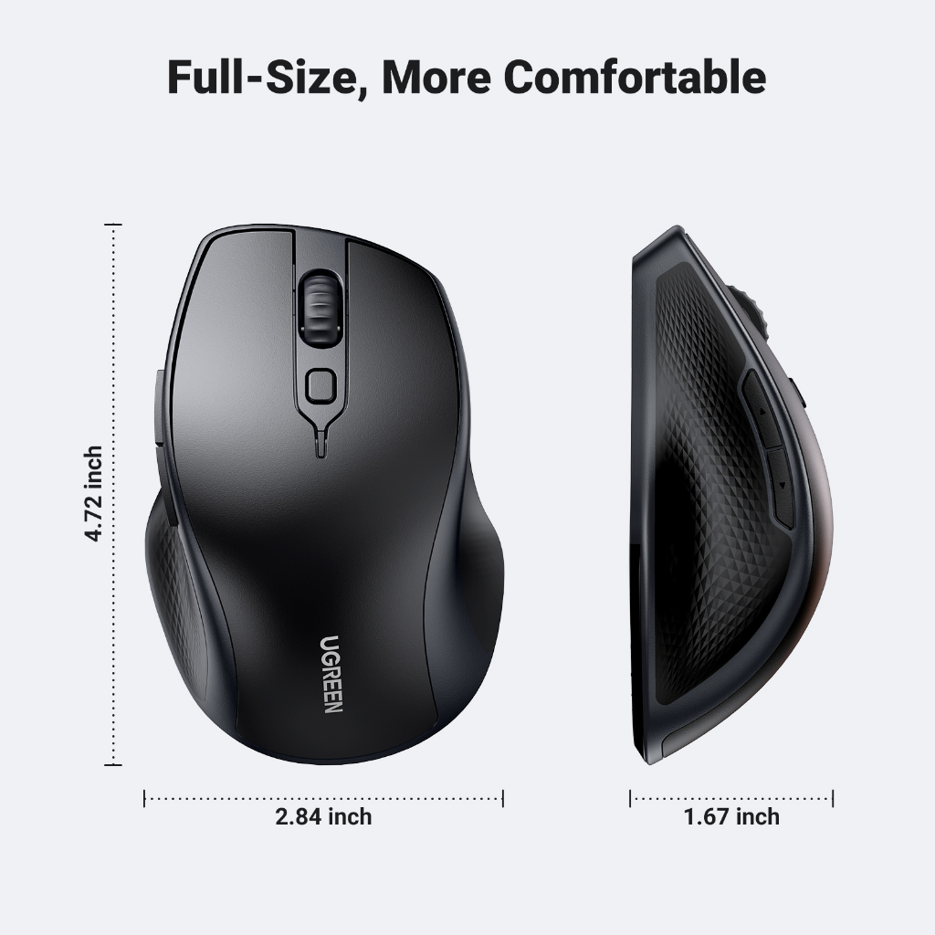 UGREEN Mouse Ergonômico Bluetooth Sem Fio Com 5 Botões Silenciosos 2.4G 5.0 E Mini Receptor USB DPI De 4 Níveis