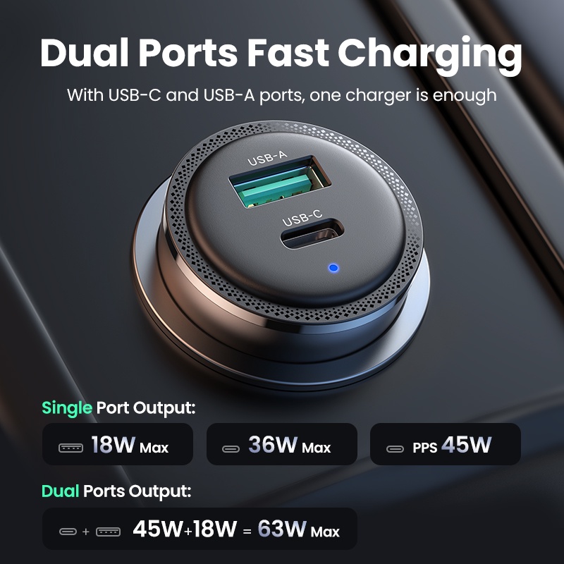 Ugreen 63W Duplo Portas Carregamento Rápido 18W 36W PD QC Carregador De Carro Para PPS Samsung 45W iPhone 14 Pro