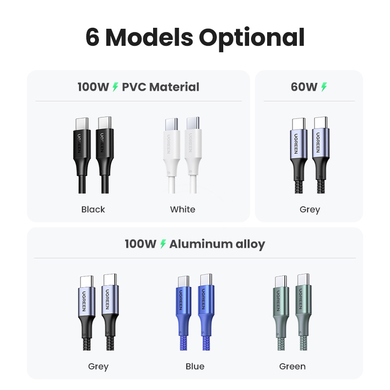 Cabo De Carregamento Rápido UGREEN 100W USB C Para PD 5A 100W Tipo MacBook iPad Pro