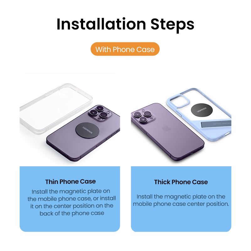 Placa Metálica UGREEN Disco Magnético Para Suporte De Telefone De Carro Celular