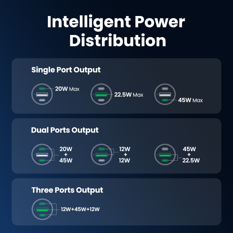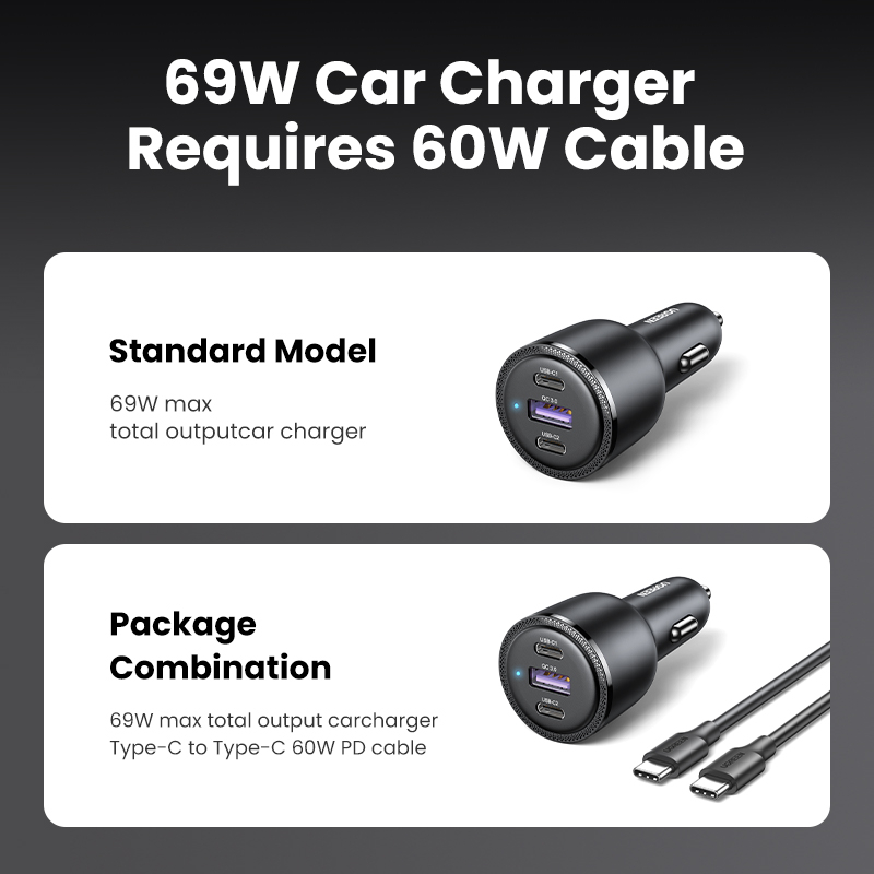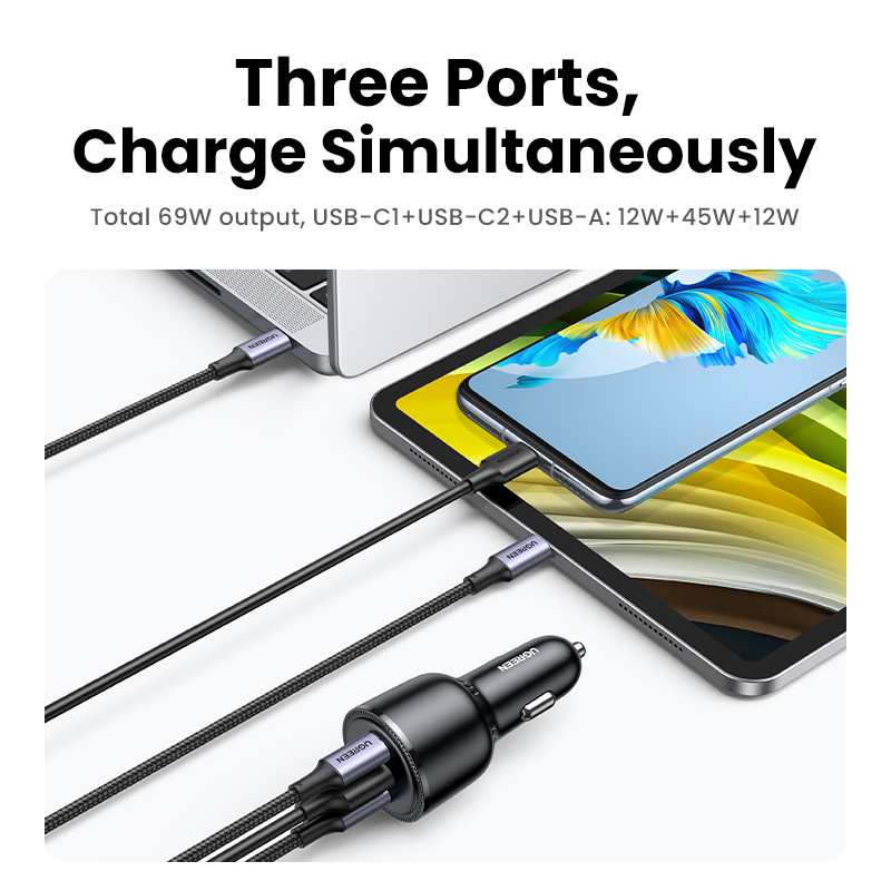 Carregador De Carro UGREEN 69W USB Tipo C Porta Dupla PD QC Carregamento Rápido Para Telefone Laptop iPhone Samsung