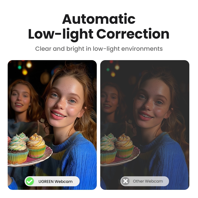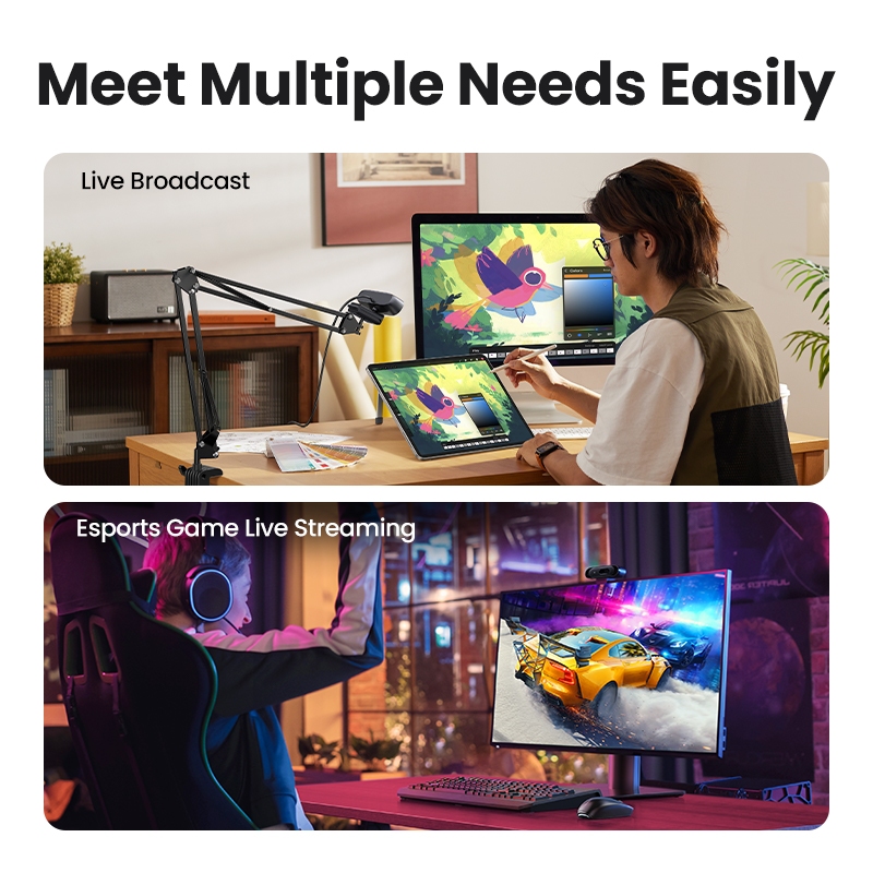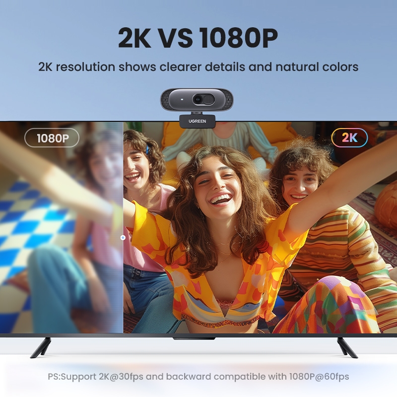 Computador UGREEN USB Câmera Externa 2K 30FPS 200W Pixels , Foco Fixo , Microfone Embutido Com Cabo De 2 Metros