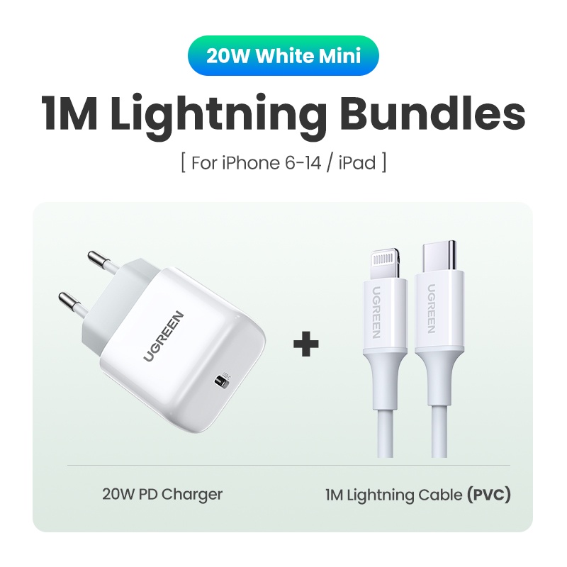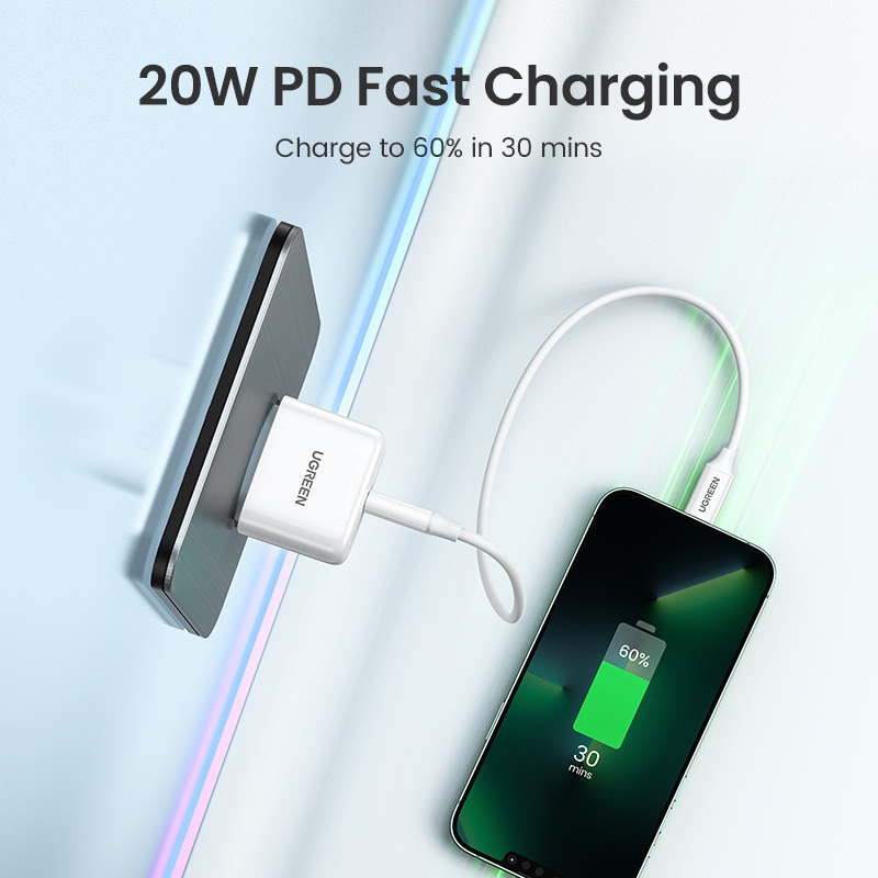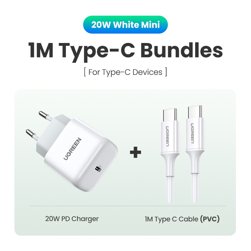 UGREEN Carregador De Parede USB C De 20W Rápido PD Adaptador De Energia-Para MacBook Air iPhone 14 Pro Max/13 Galaxy