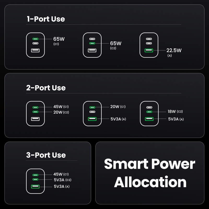 Carregador De Parede Rápido UGREEN Nexode Pro 65W USB C , 3 Portas Mini Compacto PPS GaN Dobrável Para MacBook/Air M2