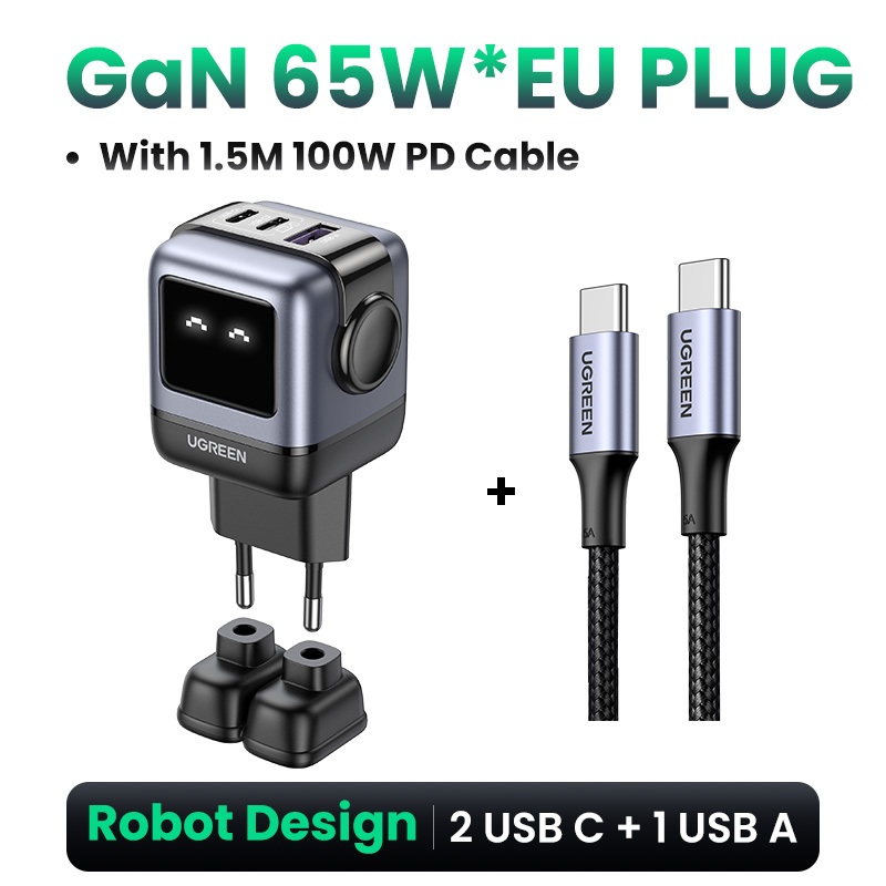 UGREEN 65W GaN Charger Robot Design PD Carregador Rápido PPS PD3.0 Para iPhone 15 Carga Rápida Macbook Xiaomi Laptop