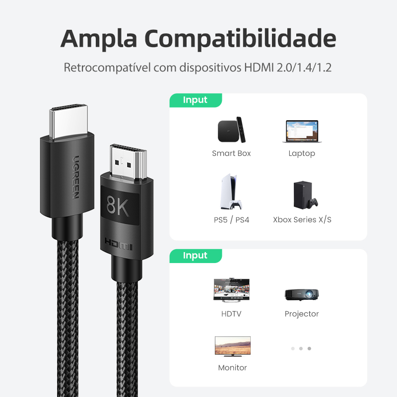 Ugreen 8K Ultra Alta Velocidade 48 Gbps HDMI 2.1 Cabo Suporta 8K/60Hz 4K/120Hz HDR Dolby Atmos eARC Para PS4 Apple