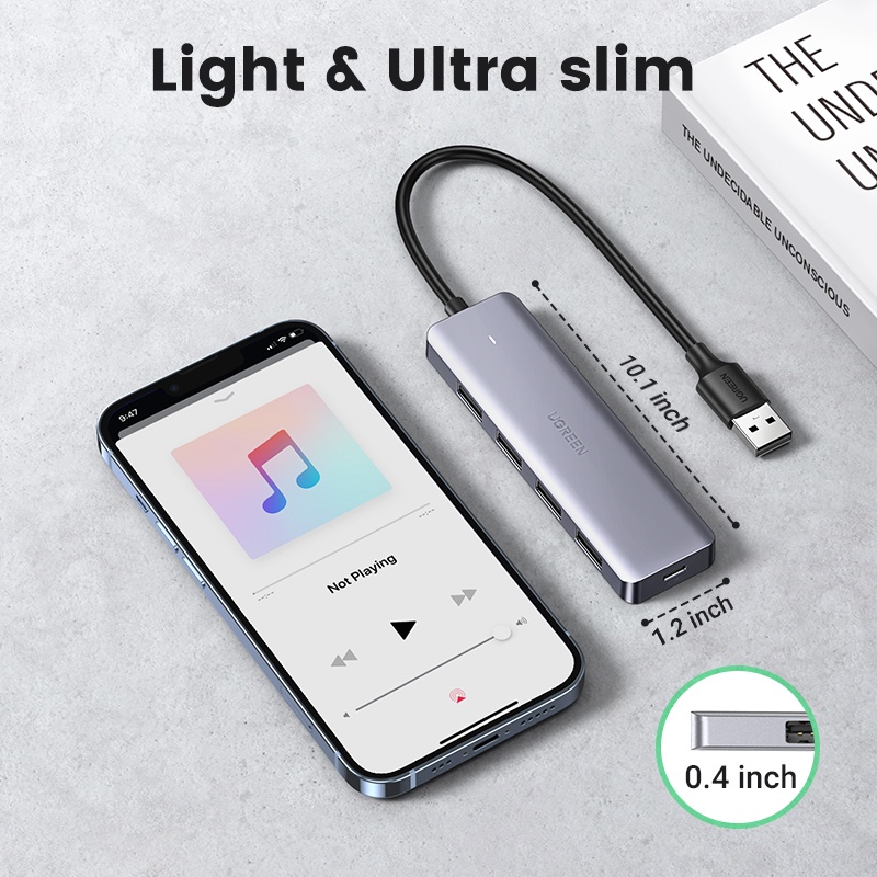 UGREEN USB Hub A 3.0 4 Portas 3.0 Com Porta De Carregamento Tipo c Ultra Slim 5Gbps High-Speed Splitter