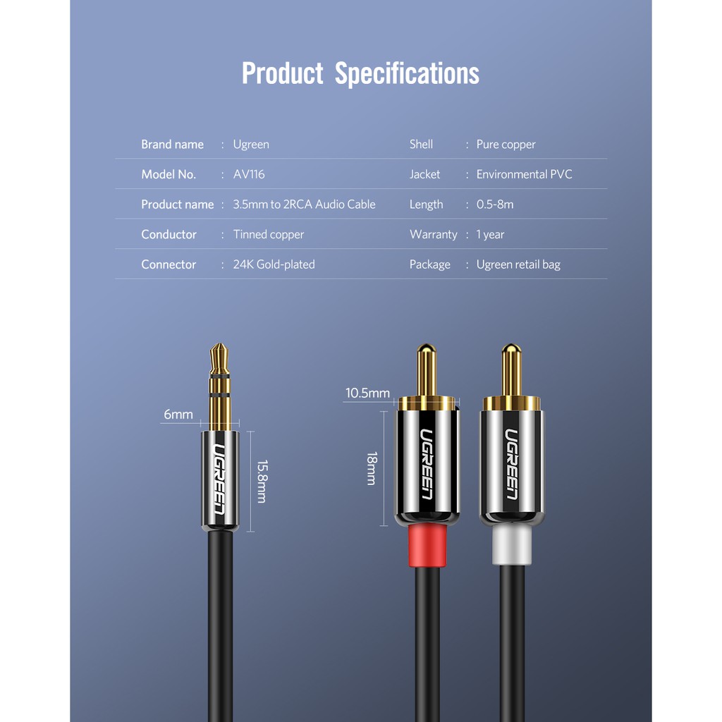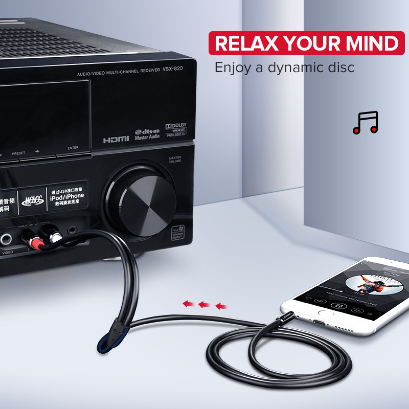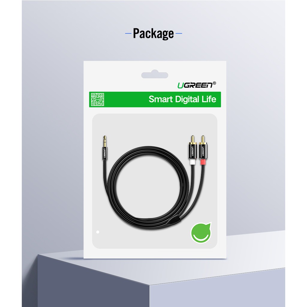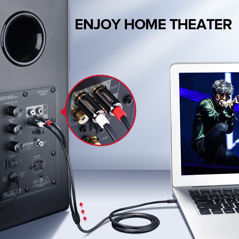 Ugreen Cabo Trançado De Nylon De 3,5mm Para 2rca / Auxiliar / Hifi / Estéreo / Y / Splitter