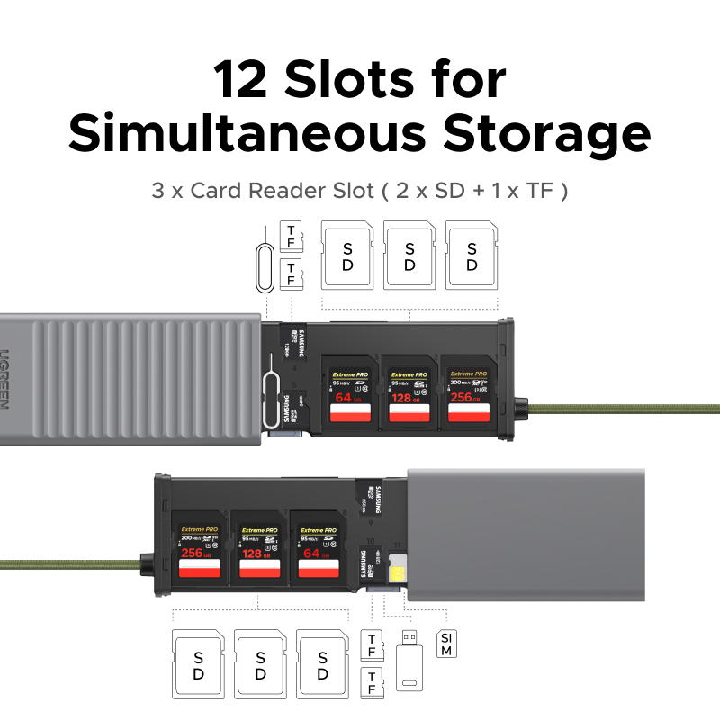 UGREEN USB-A + C Para 2 * SD + 1 * Leitor De Cartão TF Com Ferramenta Ejetora SIM 3.0 OTG Armazenamento E Leitura 2 Em 1