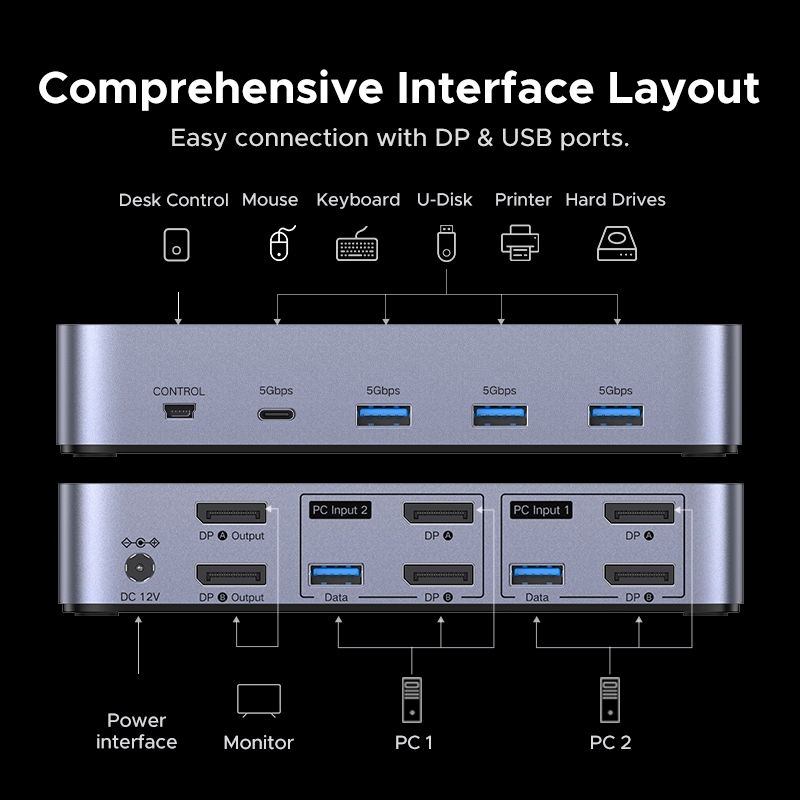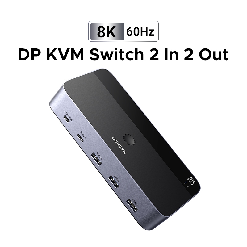 UGREEN DP KVM Switch 8K60Hz 2 Monitores 2 PCs Ultra HD Visuals USB 3.0 Transmissão De Alta Velocidade Para Mac OS Window