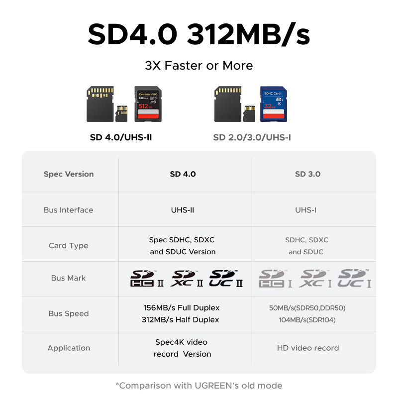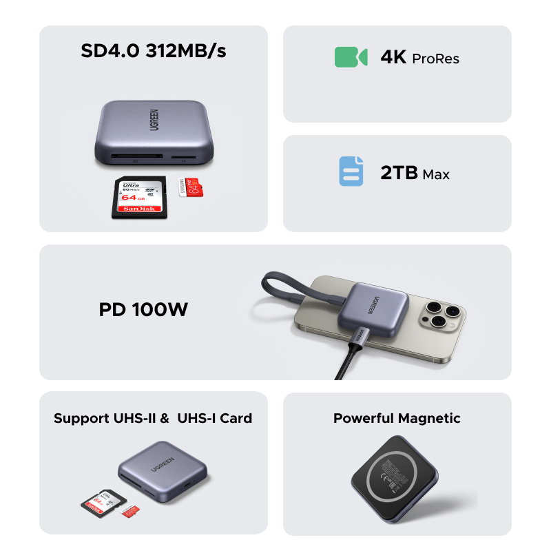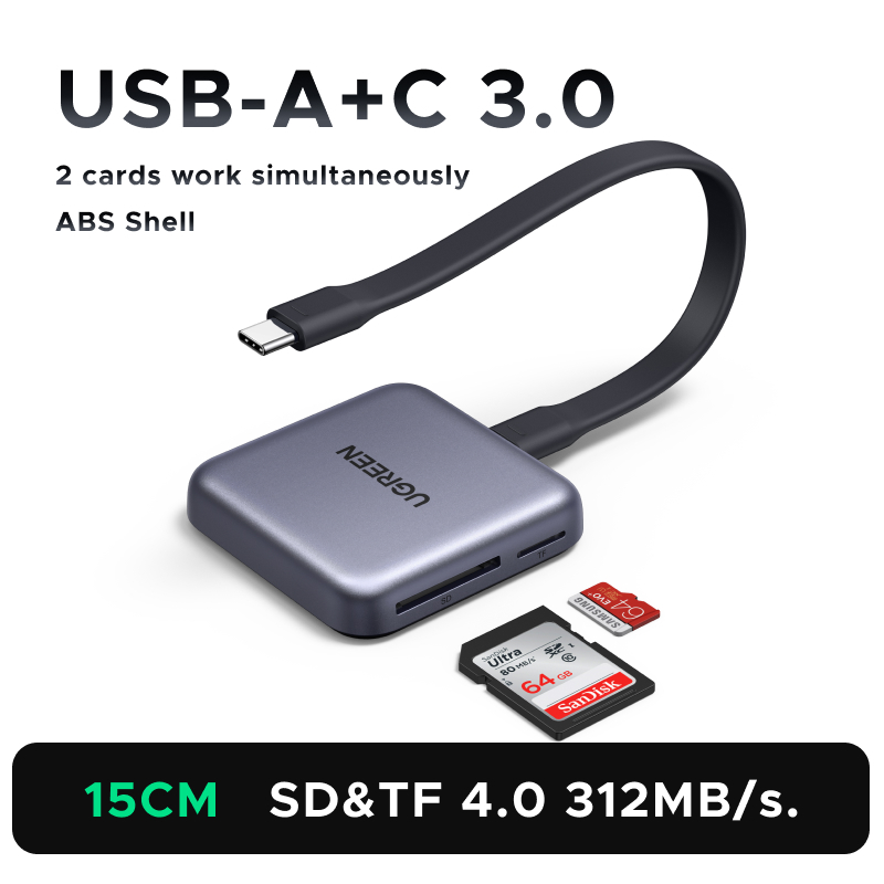 Leitor De Cartão UGREEN USB-C Adaptador SD TF 3 Em 1 | 312 Mb/s UHS-II Transferência Rápida Para Telefone/Câmera/Laptop