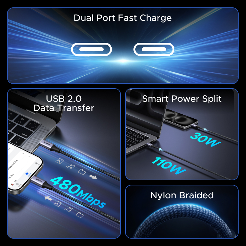 UGREEN 140W 2 Em 1 USB C Para Cabo 1.5M/2M iPad Pro 2024 iPhone 16 Max Samsung S25 Ultra