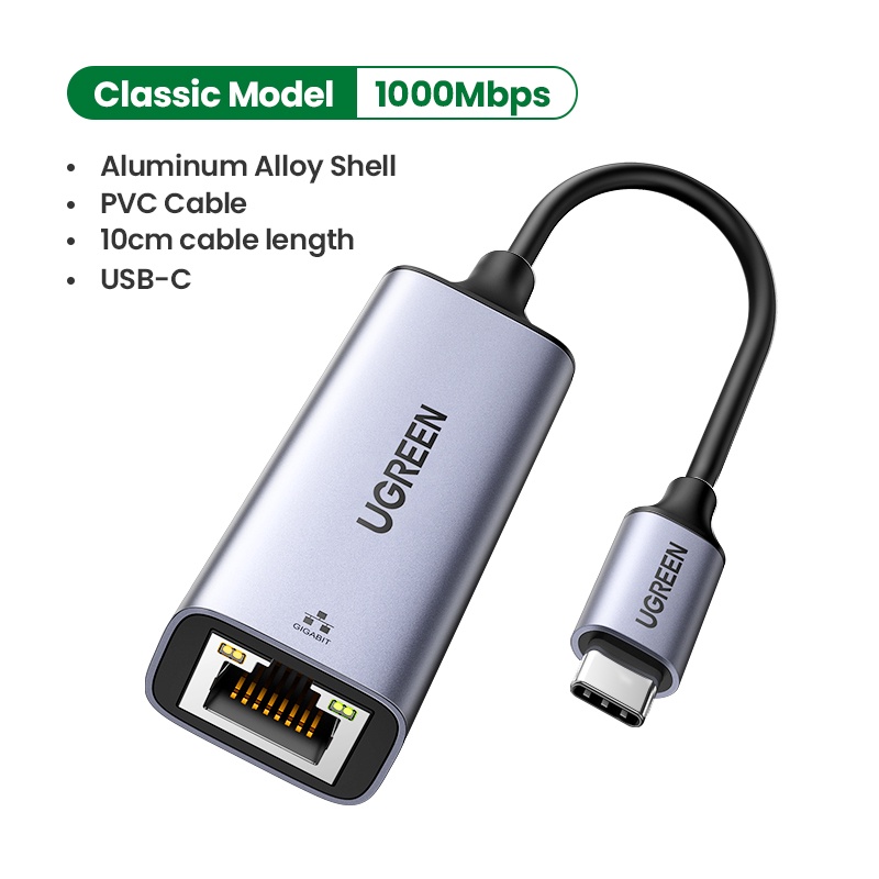 Adaptador USB-C Ethernet UGREEN USB3.1 1000Mbps A RJ45 Placa De Rede Com Fio Para PC Macbook Switch phone