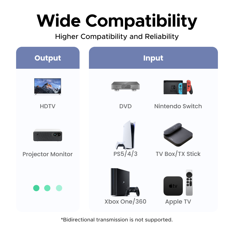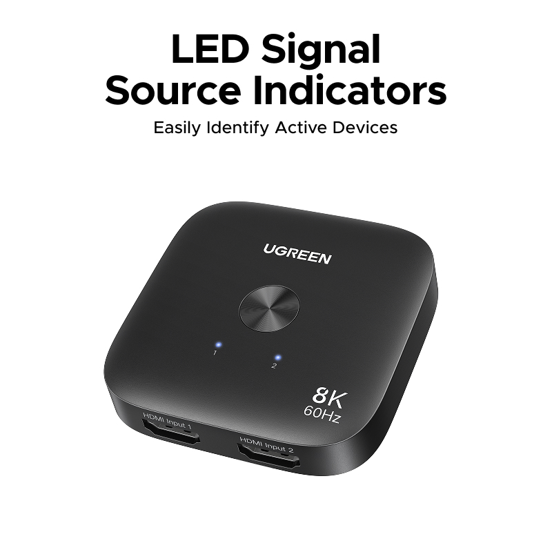 Interruptor HDMI UGREEN 2 Em 1 Saída 8K @ 60Hz 4K 120Hz 1080P 240Hz | Alta Taxa De Atualização Ampla Compatibilidade Con