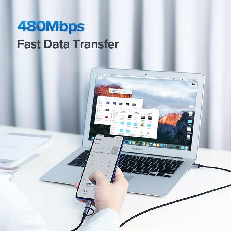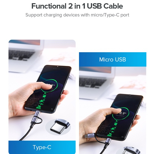 Cabo Micro USB Ugreen 2 Em 1 E Tipo C Para Samsung Galaxy S20 S9 Carregamento Rápido Mini Câmera De Mesa Xiaomi