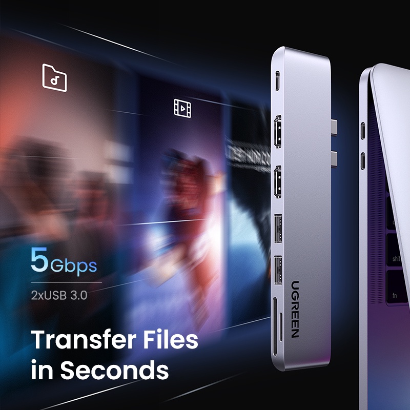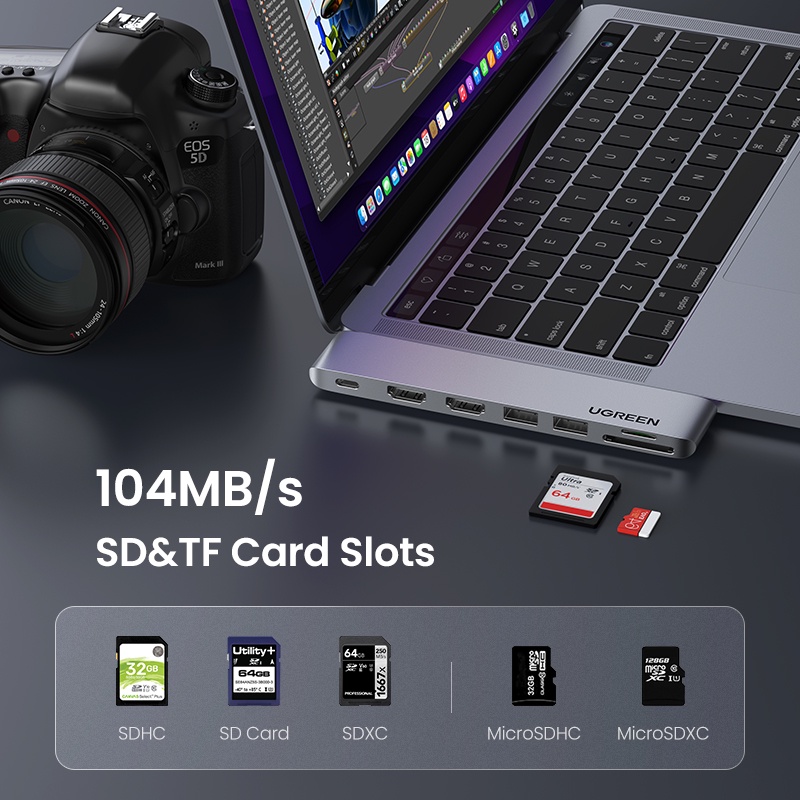 UGREEN 6 Em 1 7 Portas HUB HDMI PD100W USB3.0 Leitor De Cartão Adaptador Multifuncional
