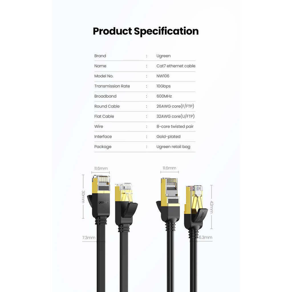 Cabo De Rede Ugreen Cat7 Long Ethernet Para Roteador Portátil Rj45 10 5gbps