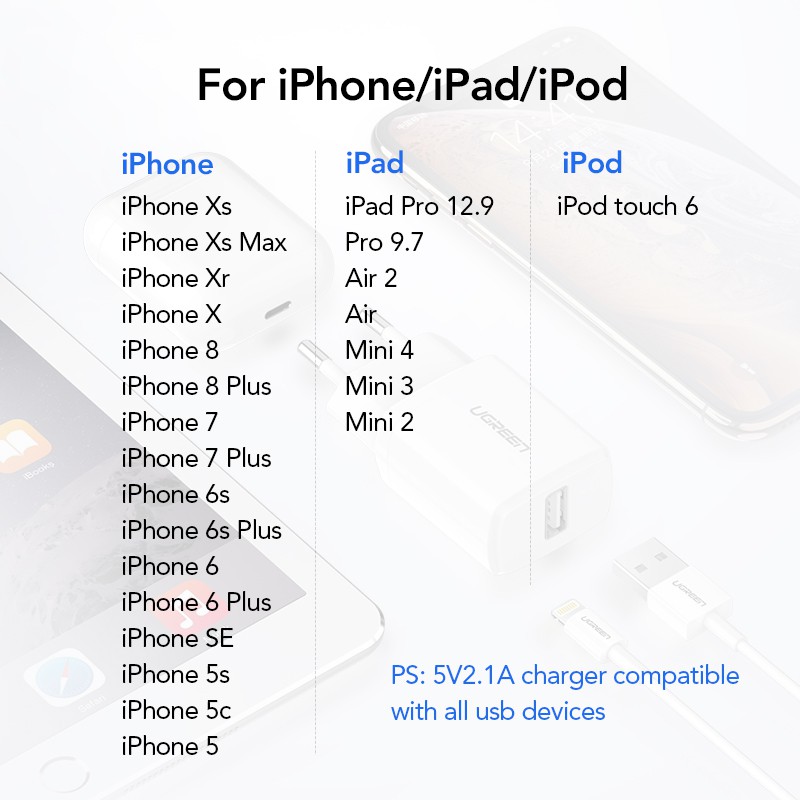 Carregador Rápido De Parede Ugreen 5V 2.1A USB A Para iPhone 14 X 8 7 iPad Adaptador Ue Samsung S9 Xiaomi Mi 8 De iWatch