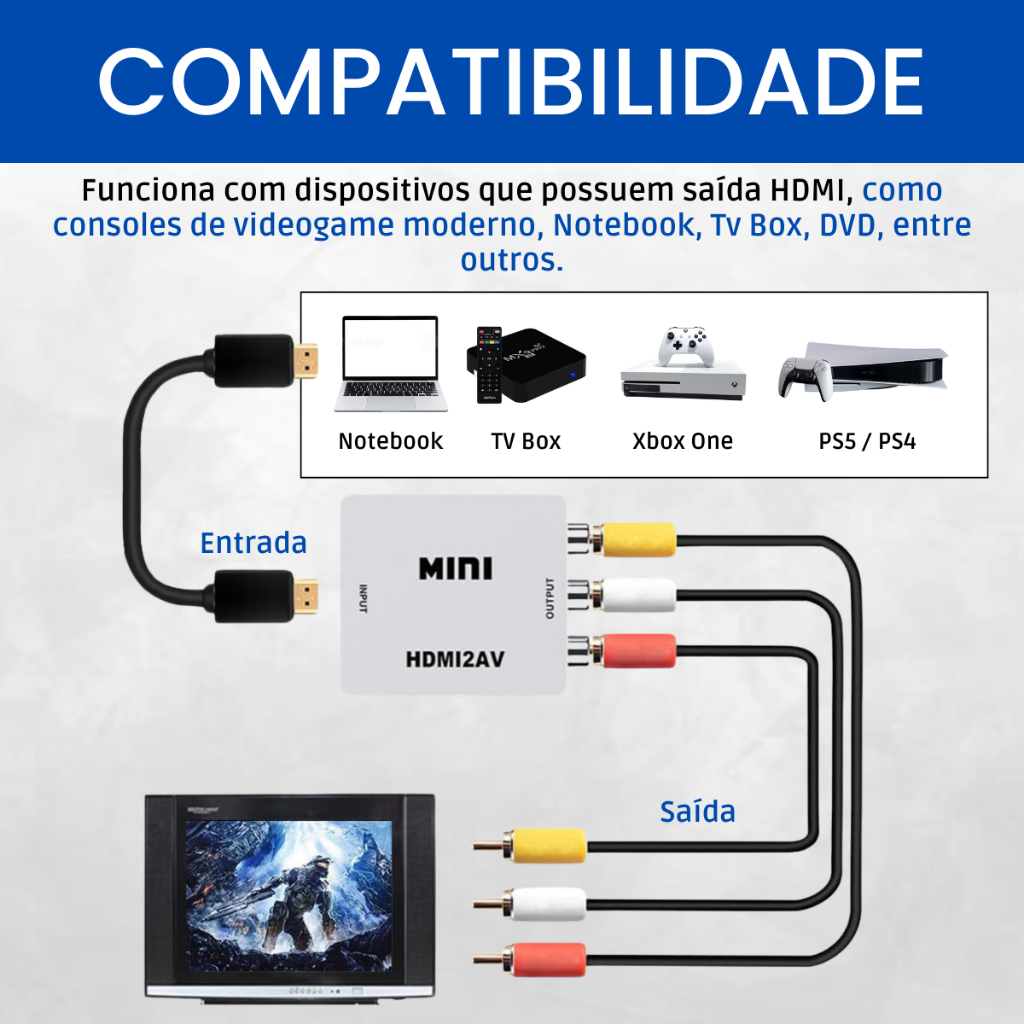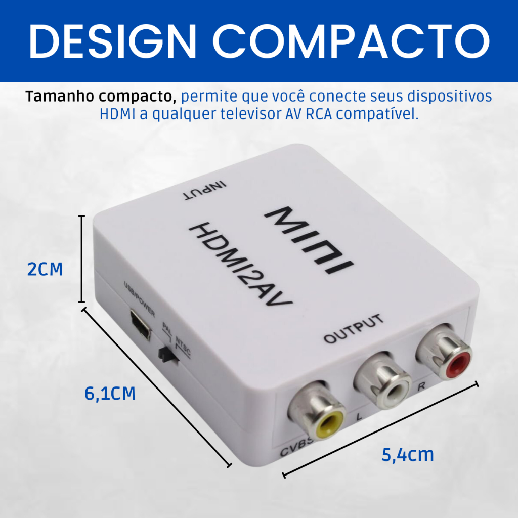 Mini Adaptador Conversor Imagem E Áudio Hdmi Para Tv De Tubo Rca E Cabo Av