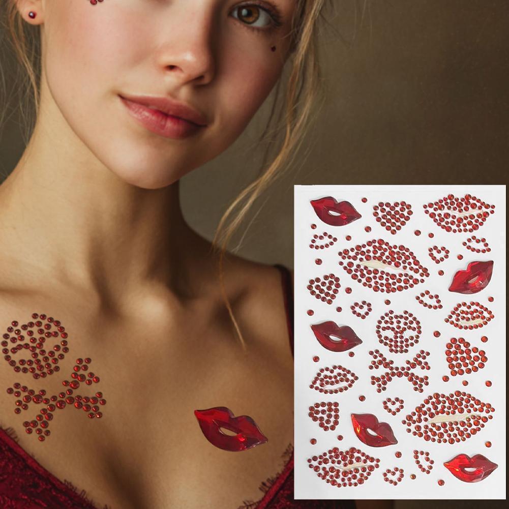 Lábio Vermelho Rosto Maquiagem Adesivos Criativo Decoração À Prova Dwaterproof Água Remendo Glitter Adesivo A4k1
