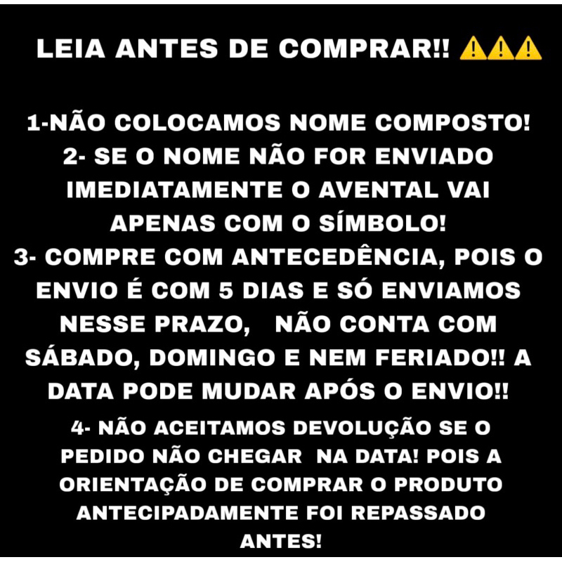 Sob encomenda: envio após 5 dias da compra
