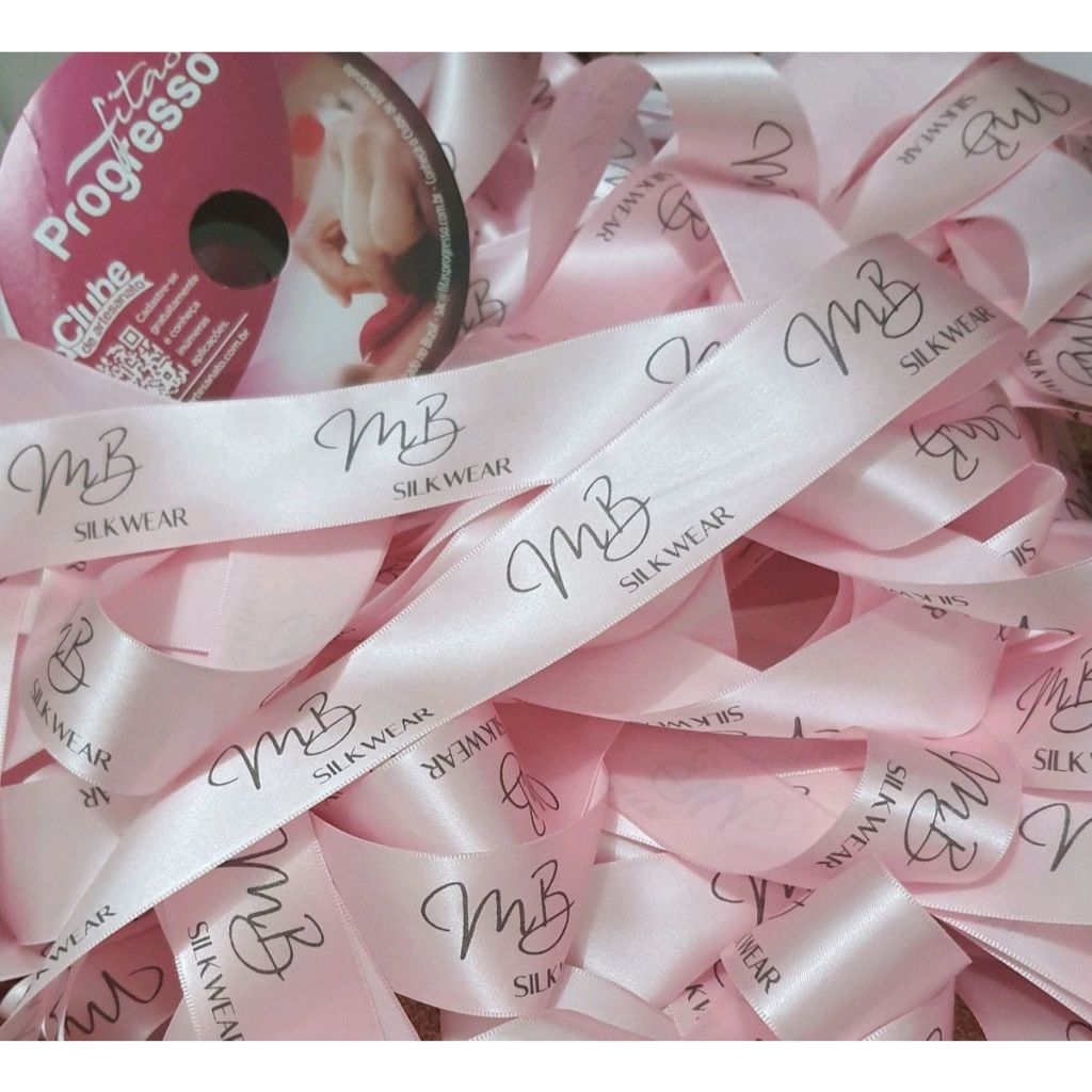 Fita de Cetim personalizada de 15mm em Hotstamping Dourado, Preto, Rosê Gold ou Prata