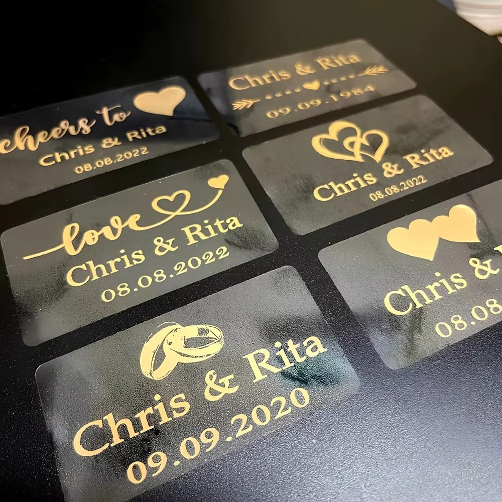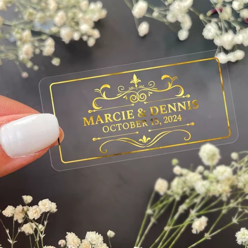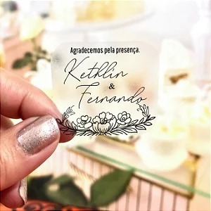 Adesivo 3x5 Transparente com impressão em Hotstamping Dourado, Prata, Preto, Rose ou Branco