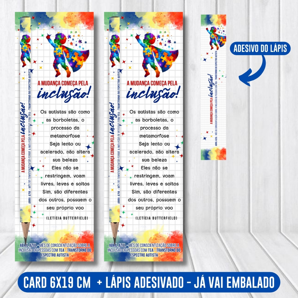 10, 20 Ou 40 Kits Lembrancinha Dia de Conscientização do Autismo Card + Lápis