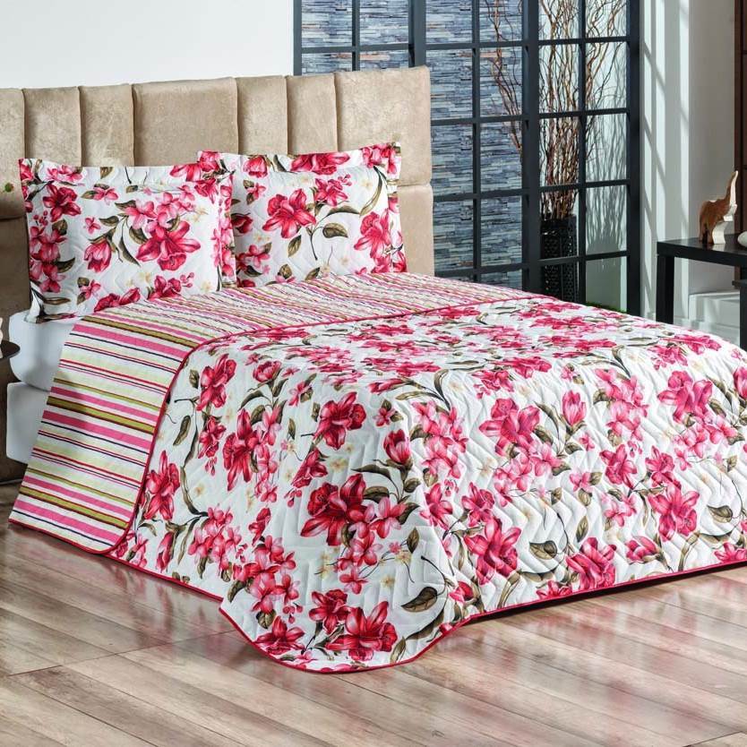 Kit Cobre Leito Dupla Face Cama Casal Queen Colcha 03 Peças Matelado Duas Cores/2 PORTAS
