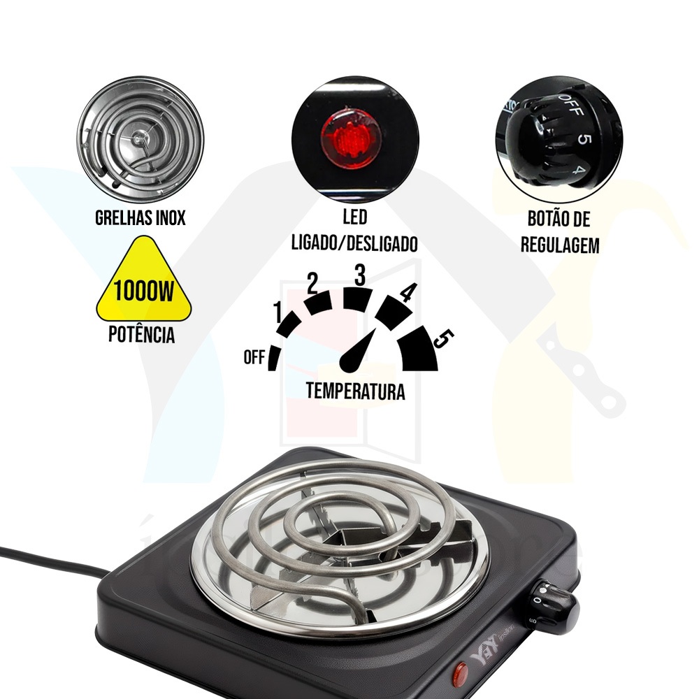 Fogao Fogareiro Eletrico 1000w 1 Boca Portatil Camping 110V - 220V