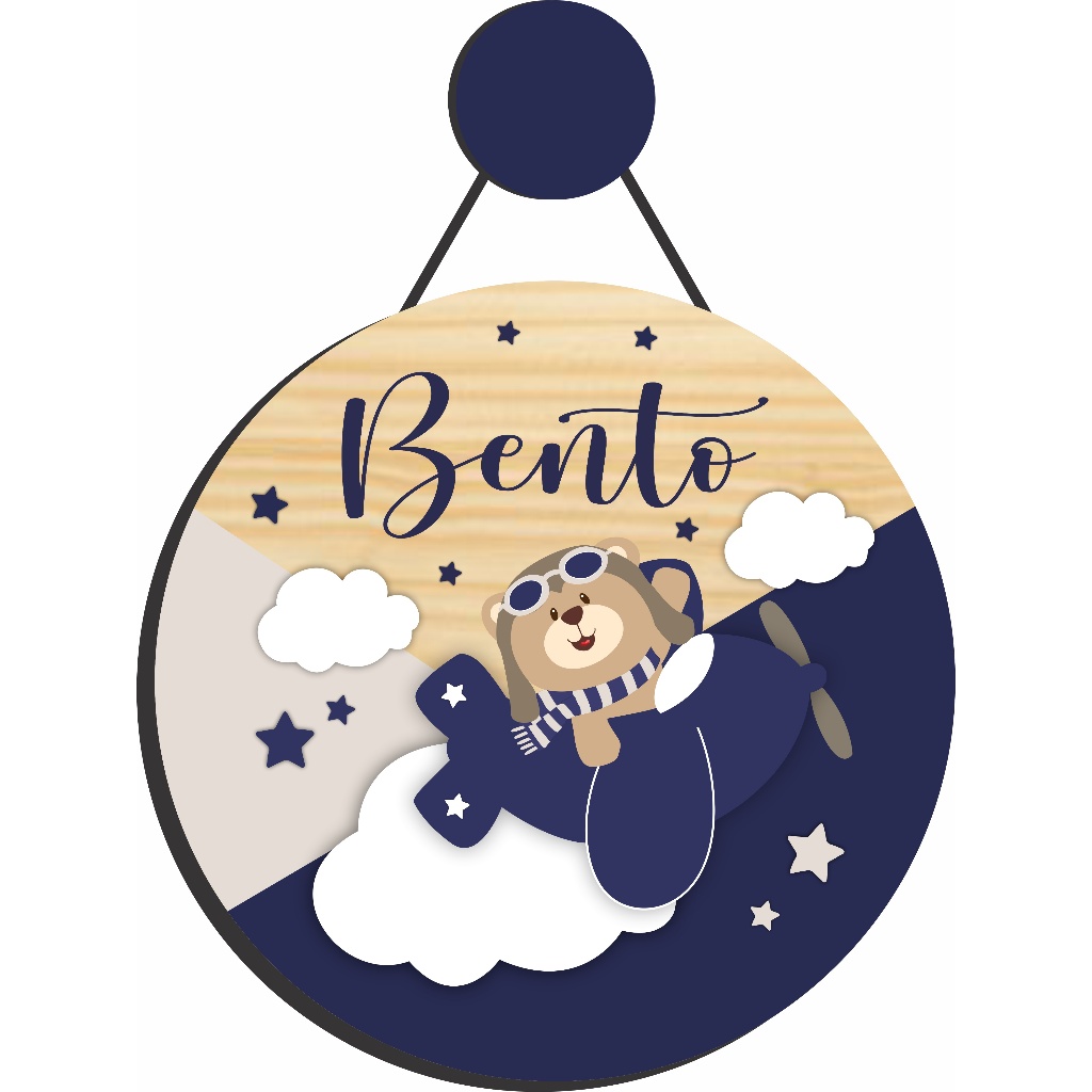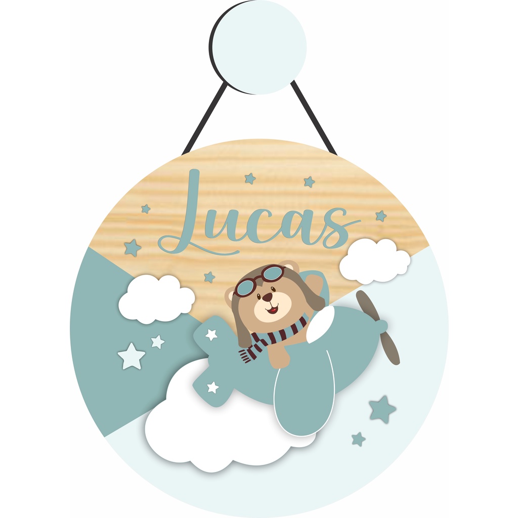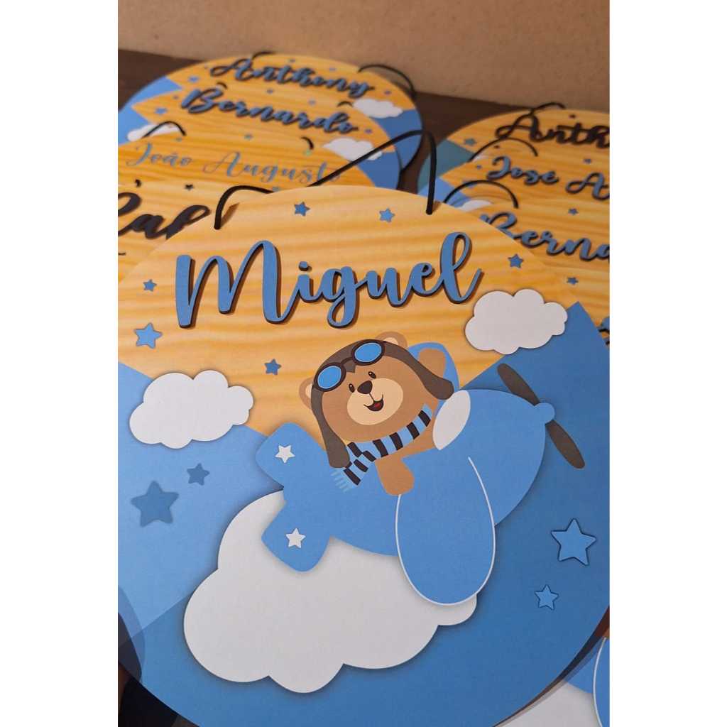 Enfeite Porta Maternidade Urso Aviador, Avião, Ursinho - Nome personalizado - Decoração para quarto!