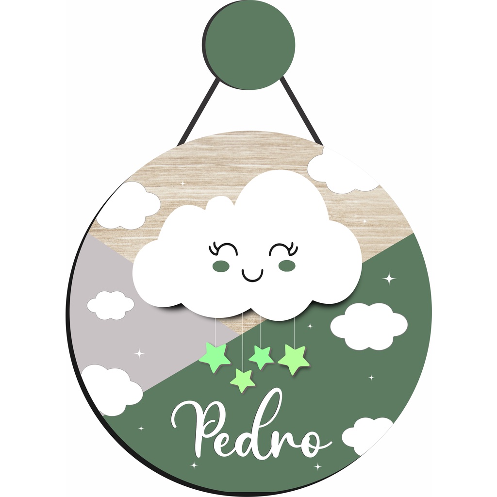 Enfeite Porta Maternidade Nuvem, Estrelas, Chuva de amor - Nome personalizado! GUIRLANDA.