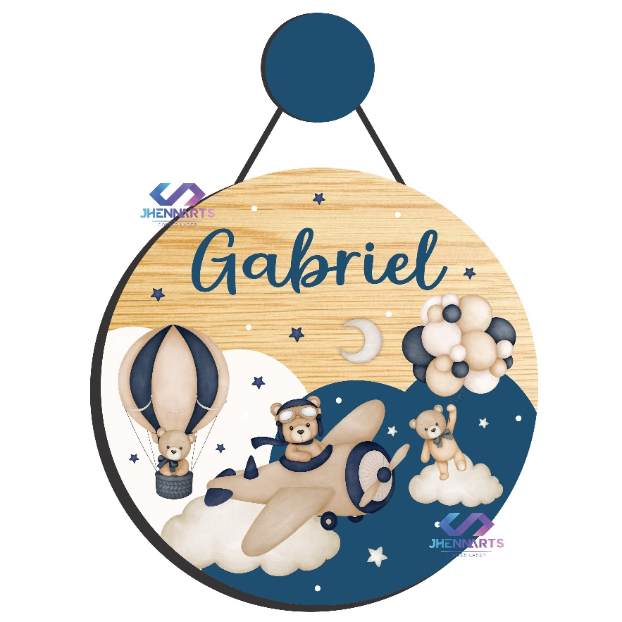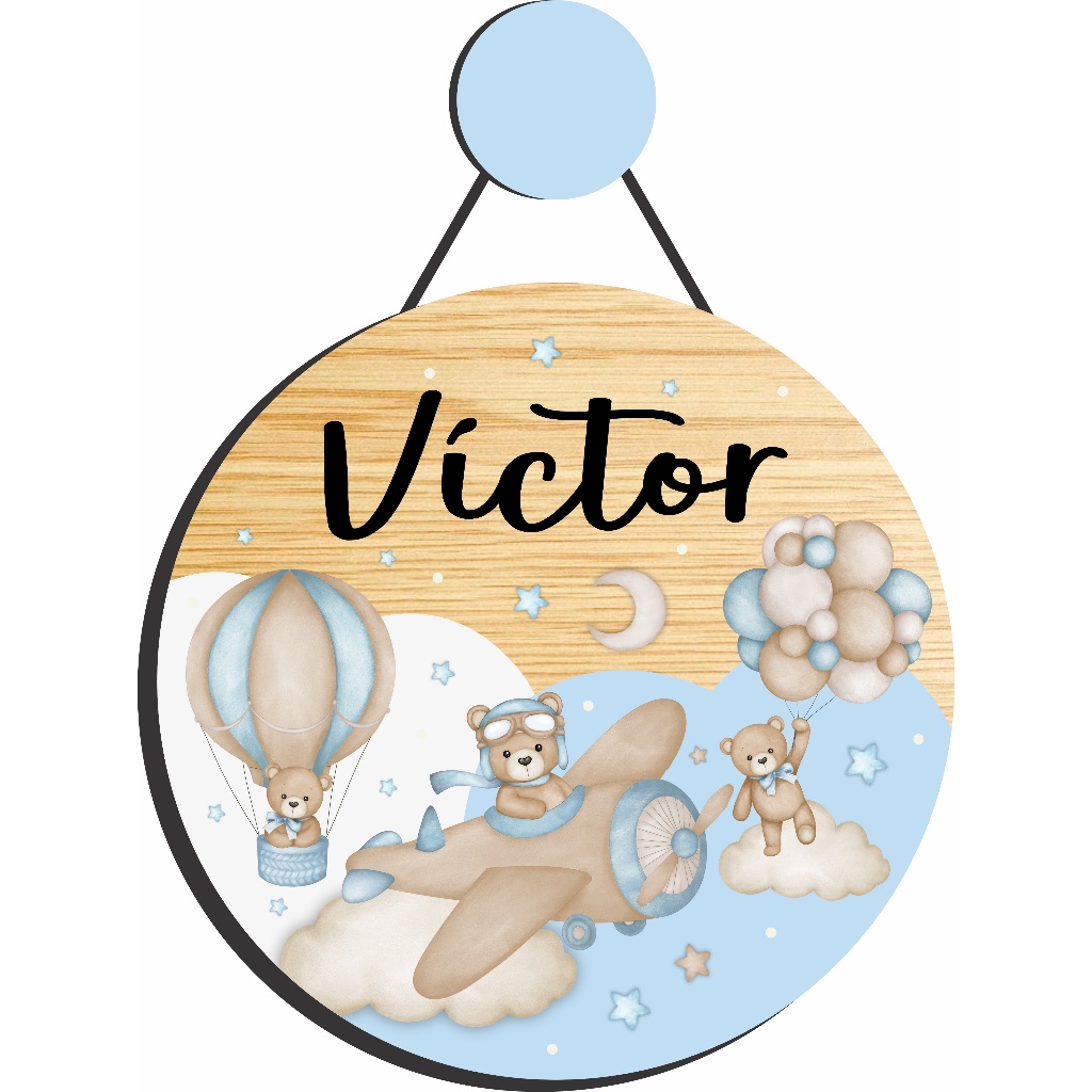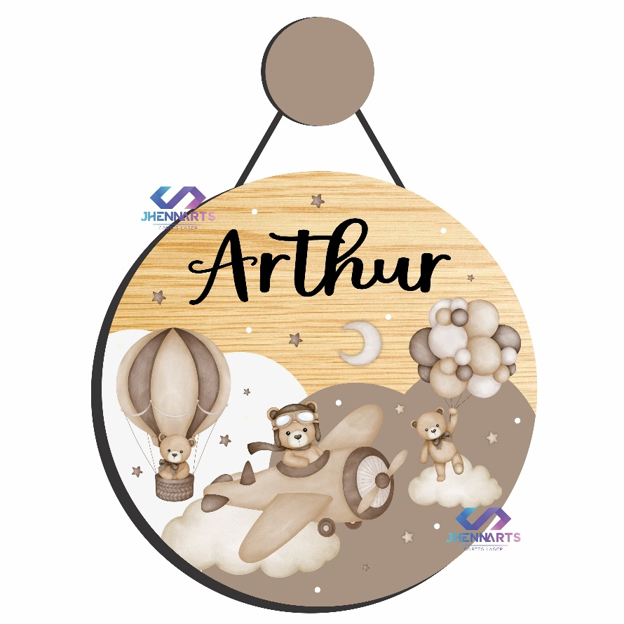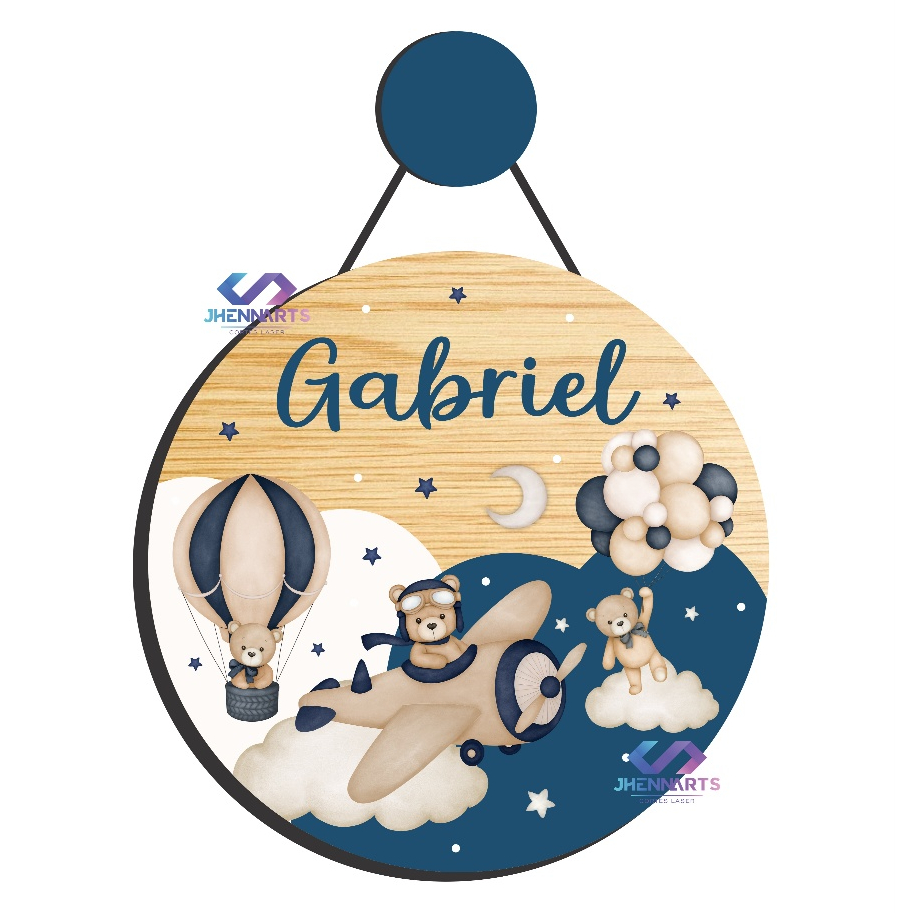 Enfeite Porta Maternidade Urso Aviador Aquarela - Ursinho baloeiro aquarela - Decoração para quarto!