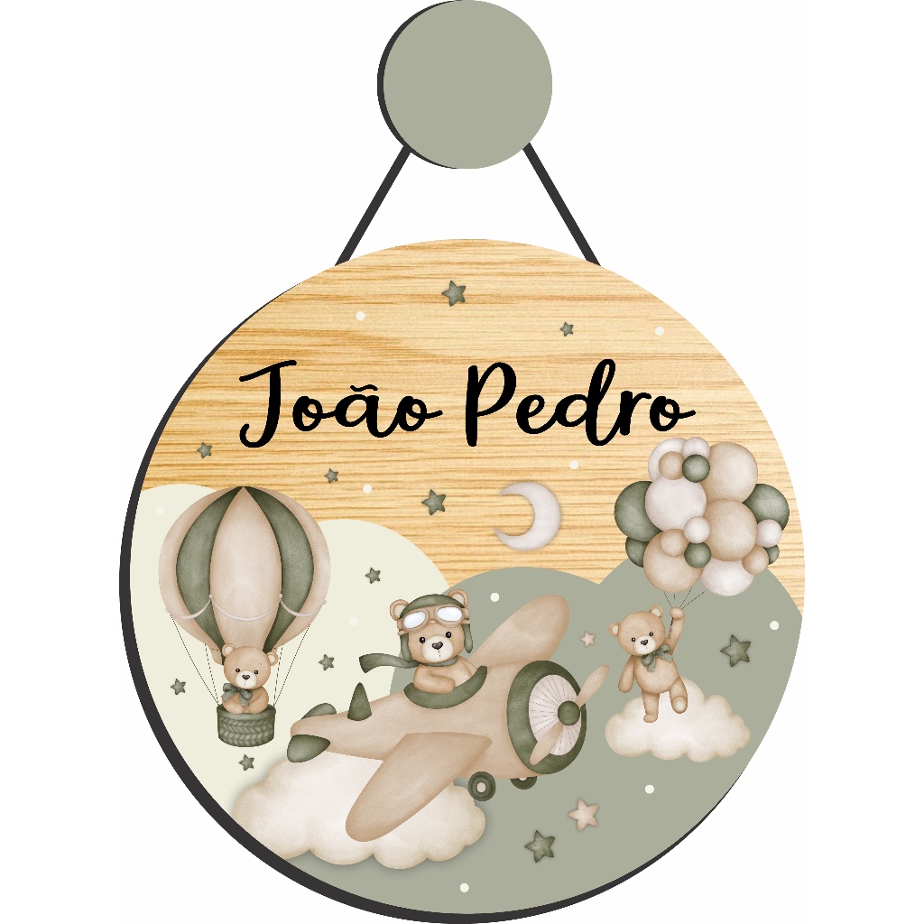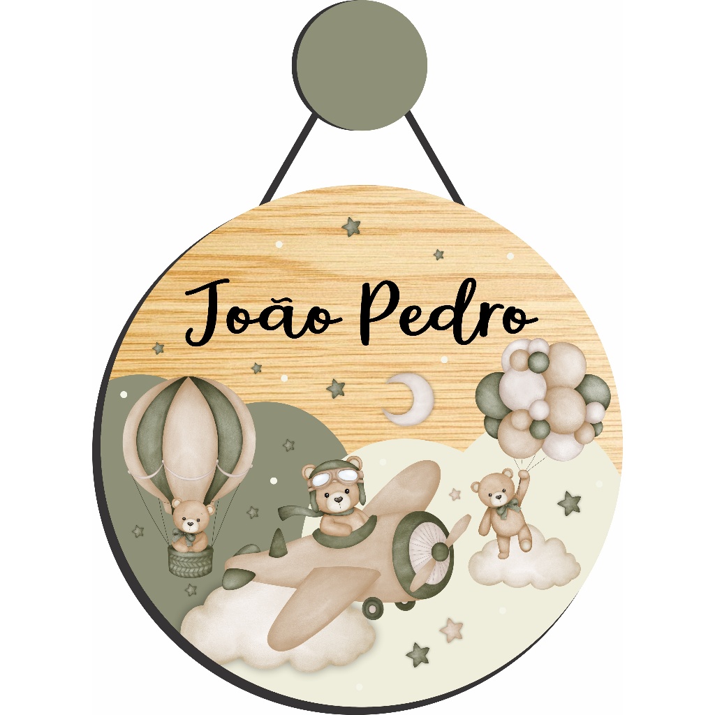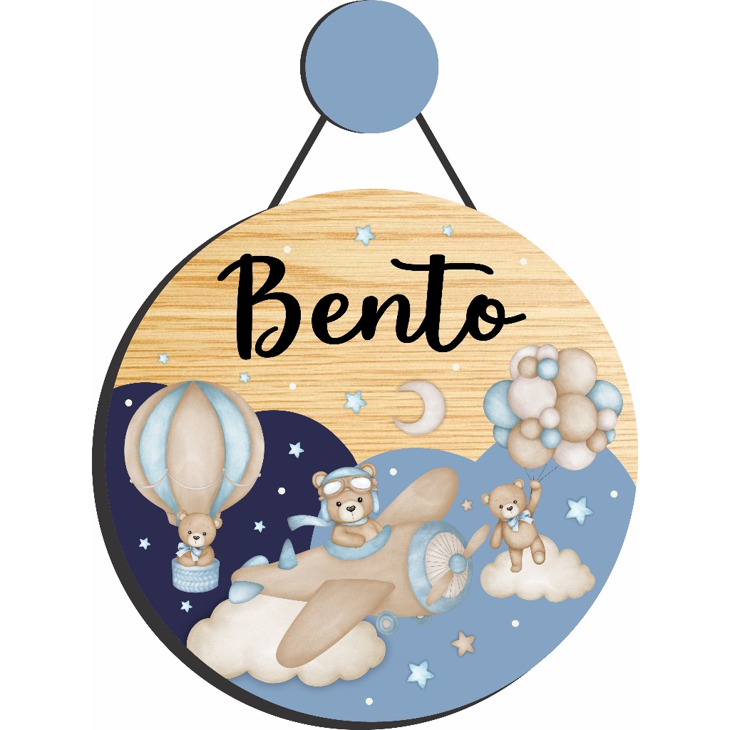 Enfeite Porta Maternidade Urso Aviador Aquarela - Ursinho baloeiro aquarela - Decoração para quarto!